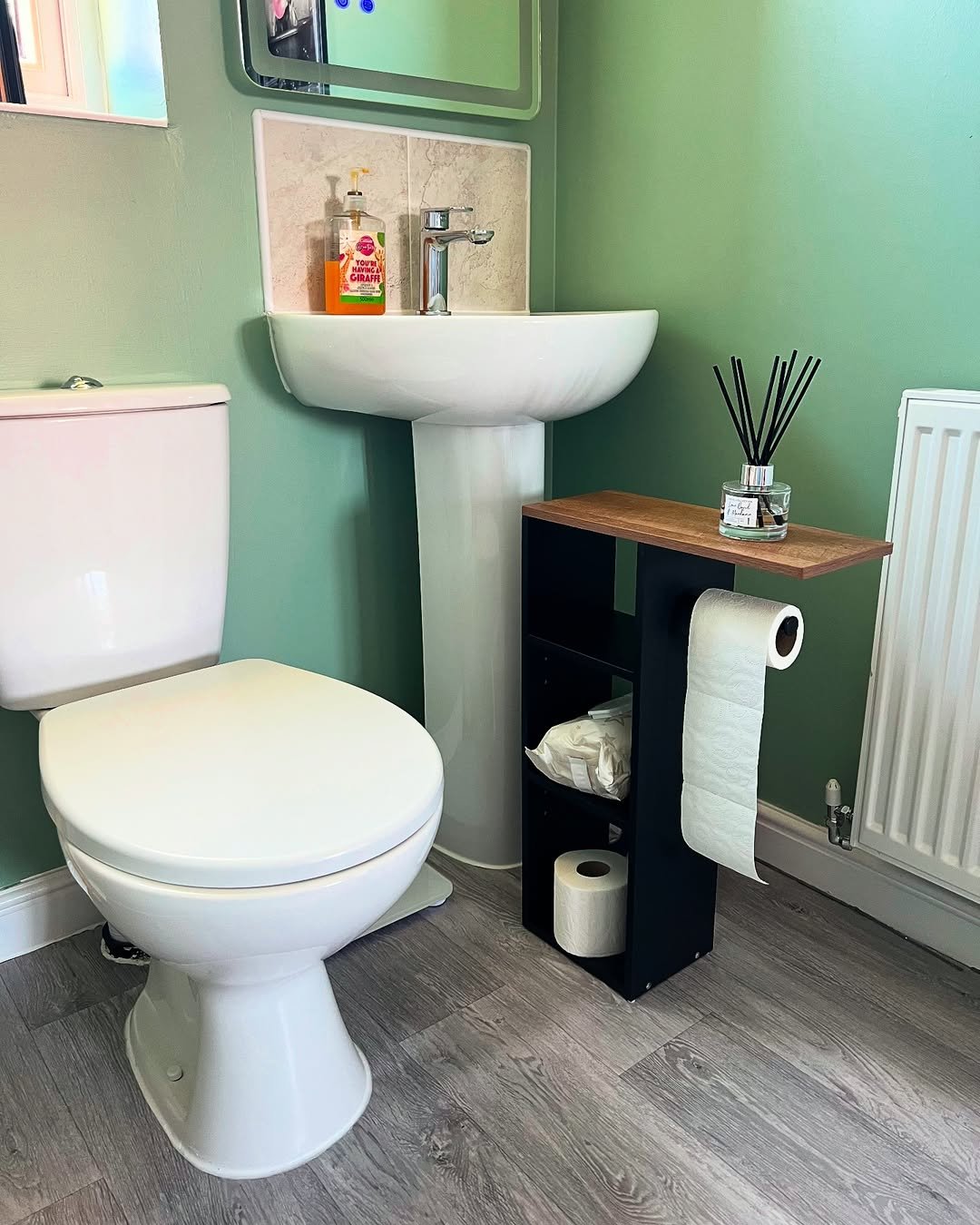 Now this is smart use of space. A compact side unit that holds your roll, extra storage, and even doubles as a mini shelf? That’s multitasking done right.
