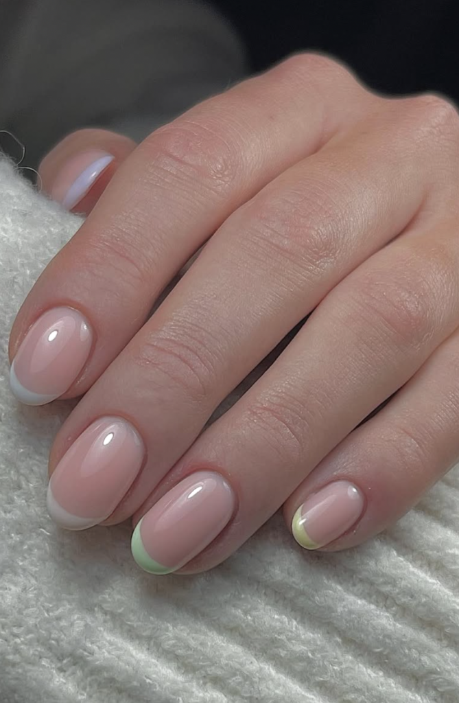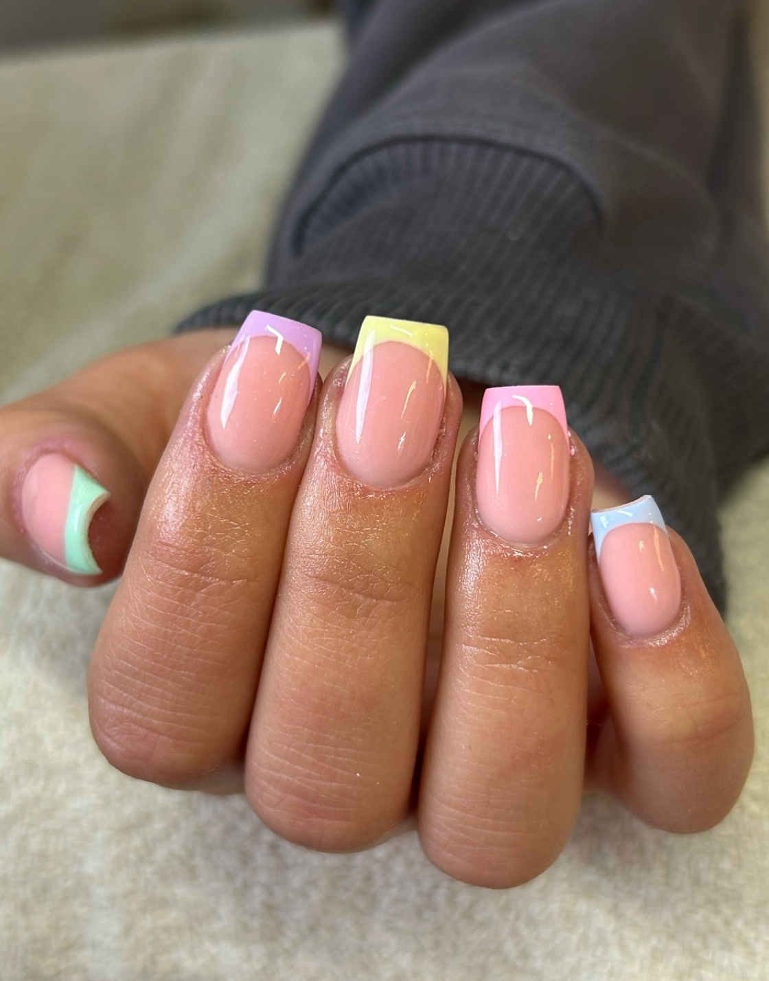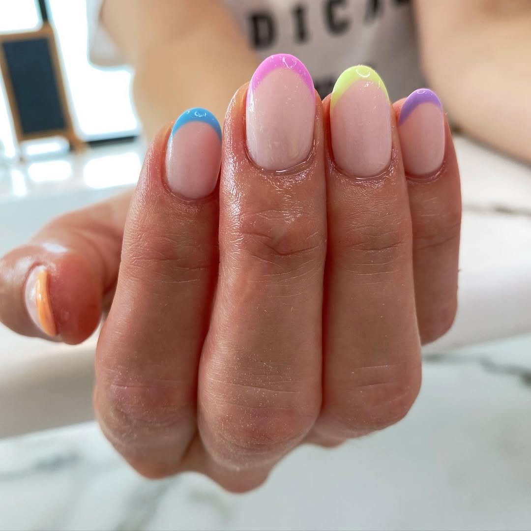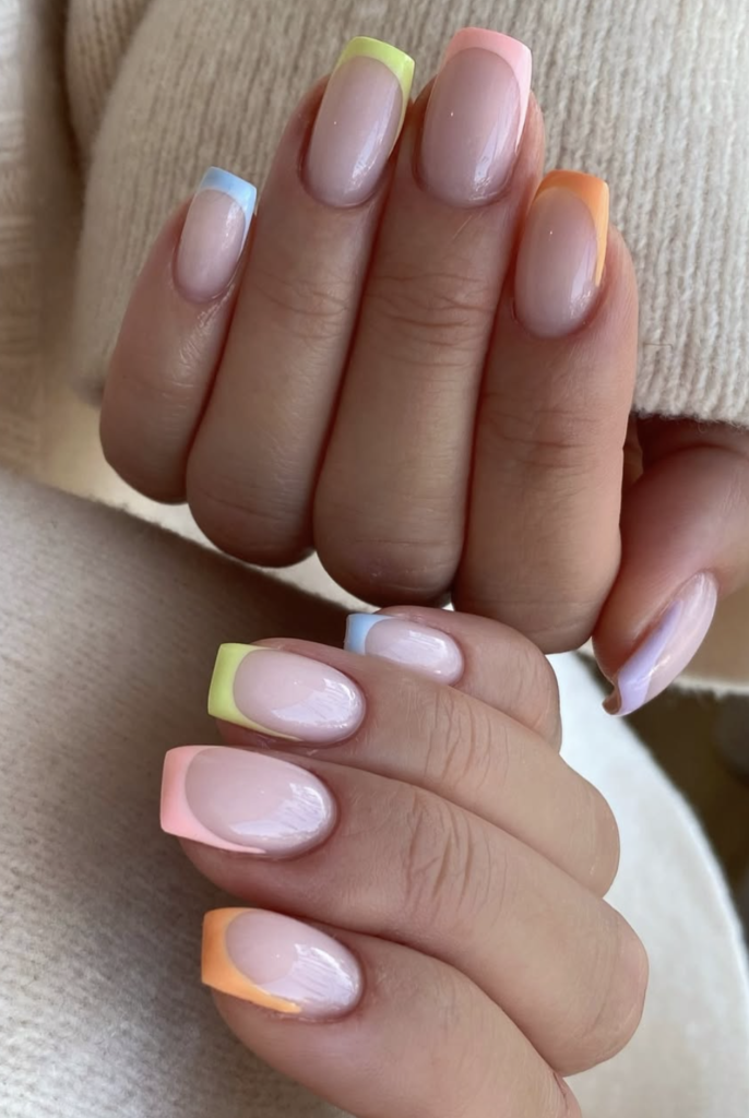 A softer take on the pastel French, these barely-there rainbow tips are giving clean-girl energy with a twist. Each color is so gently blended that you almost have to double-take — which honestly is part of the charm.