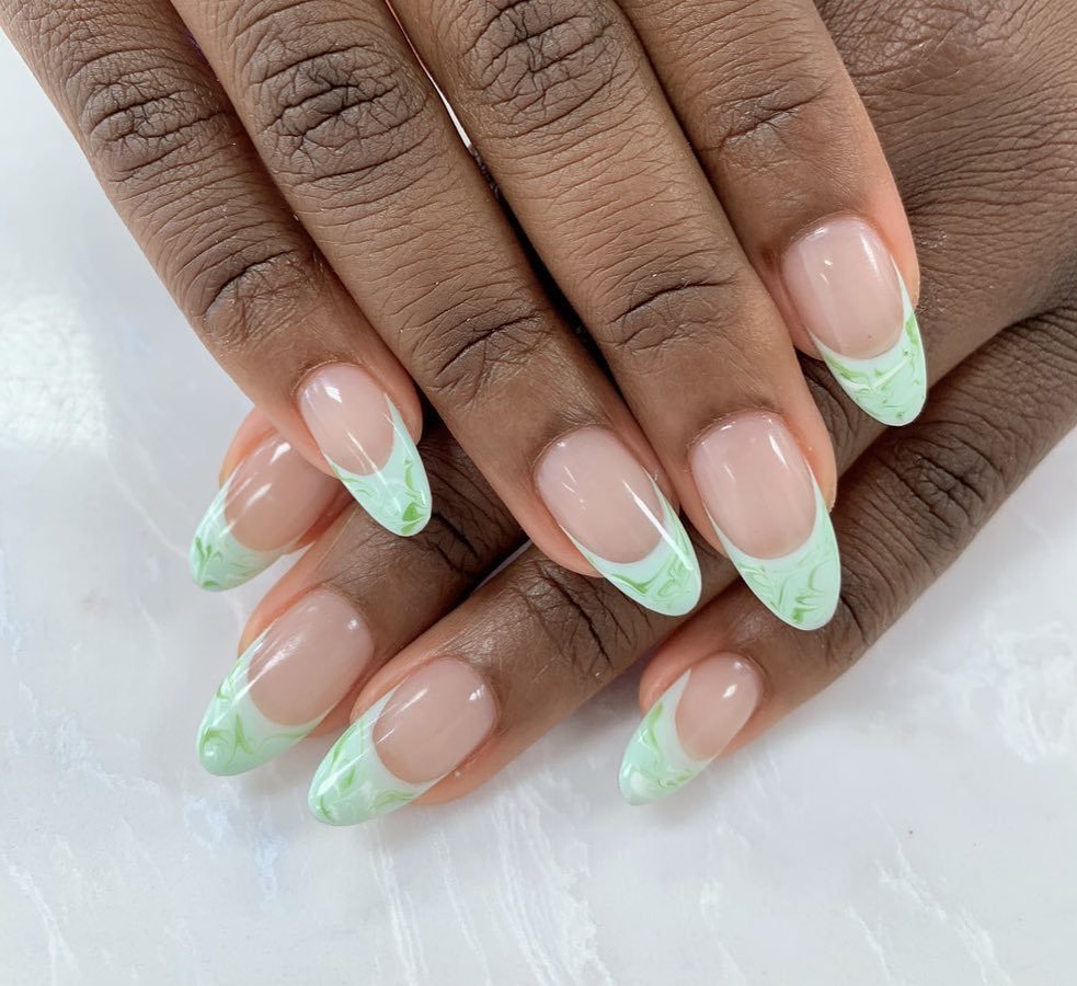 This is the kind of pastel French you wear when you want something polished but with a wink of color. The crisp white and minty edges look like they were dipped into sorbet — subtle but fresh.
