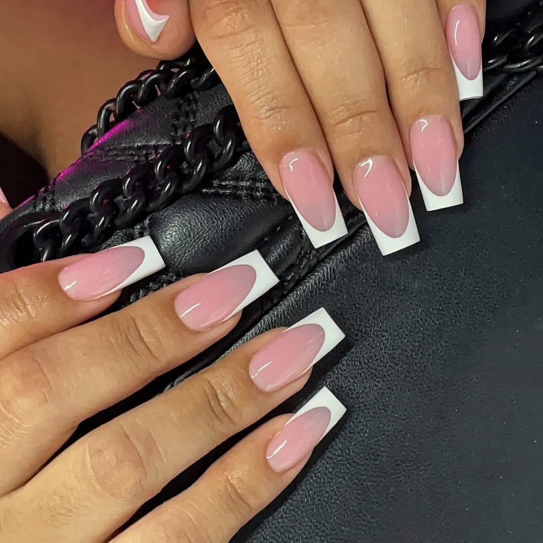 Here, the pink French tip leans classic but stays sharp. The crisp white-pink edge against a glossy nude base gives that salon-fresh look that never really goes out of style.