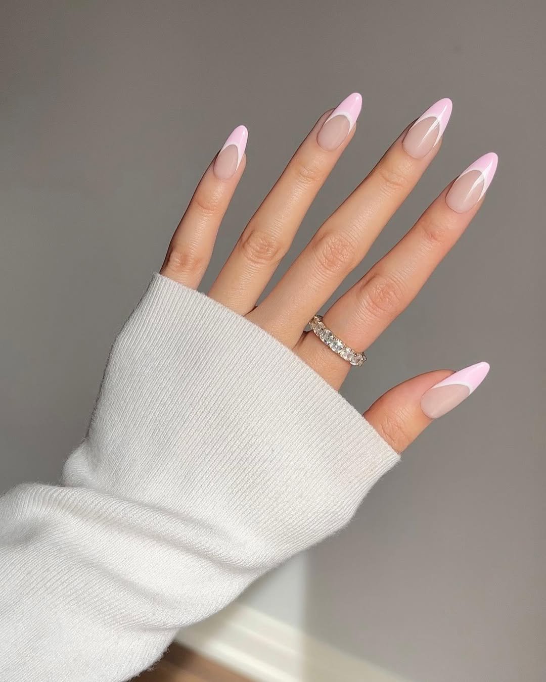 This one is all about subtle curves and clean execution. The pink tip hugs the nail softly, blending into the nude base with ease.