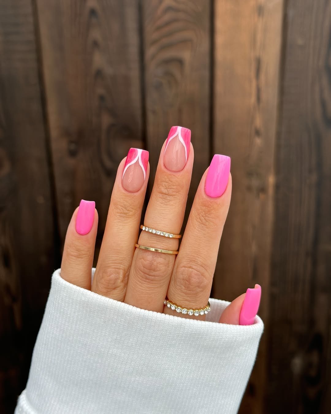 This set makes a statement through shape and color alone. Bold pink tips on a square base feel confident and unapologetic.
