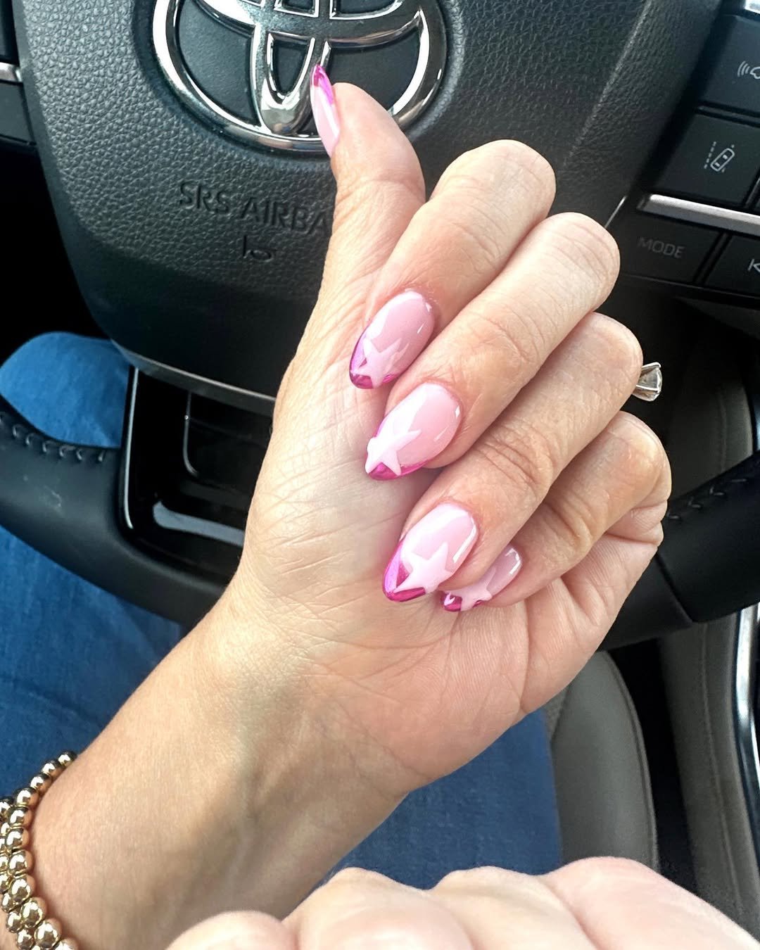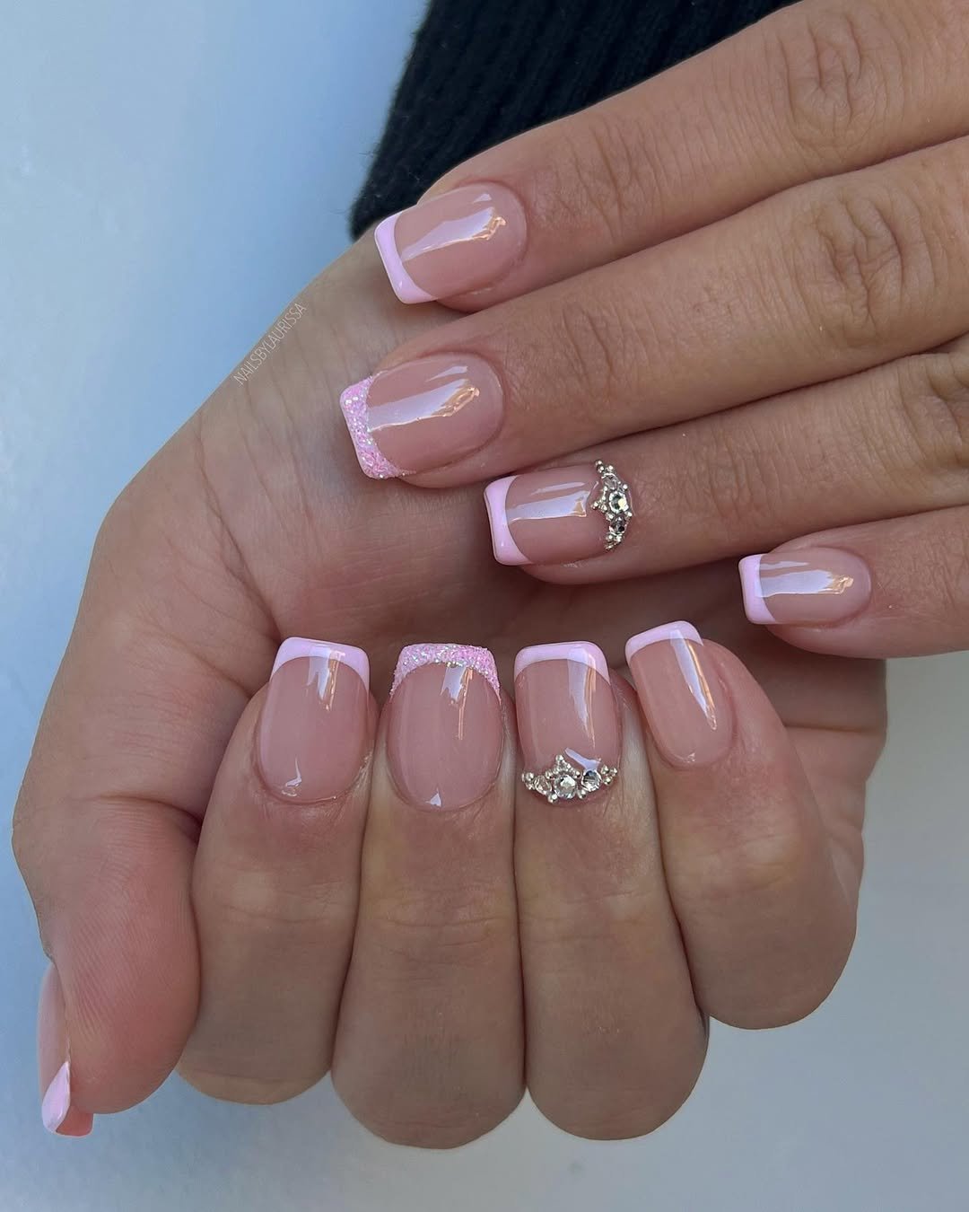 This look keeps the French tip playful with soft pink tones and subtle detailing that feels fun without crossing into extra. It has a relaxed, approachable vibe.