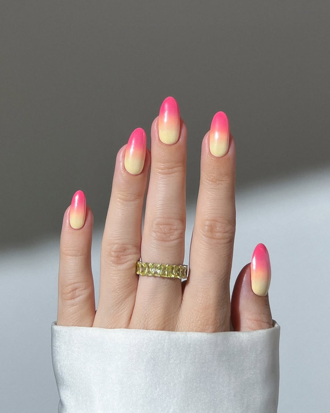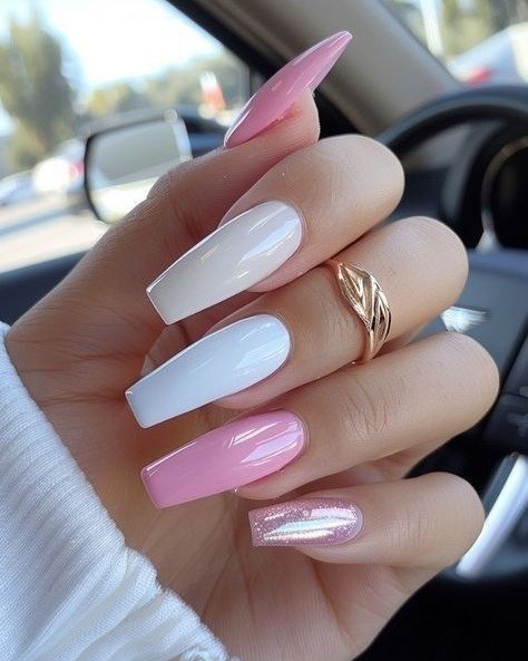 This one feels straight out of a dream. The pink-to-milky ombre is balanced and clean, with just enough brightness at the tips to feel fresh. The shape keeps it timeless.