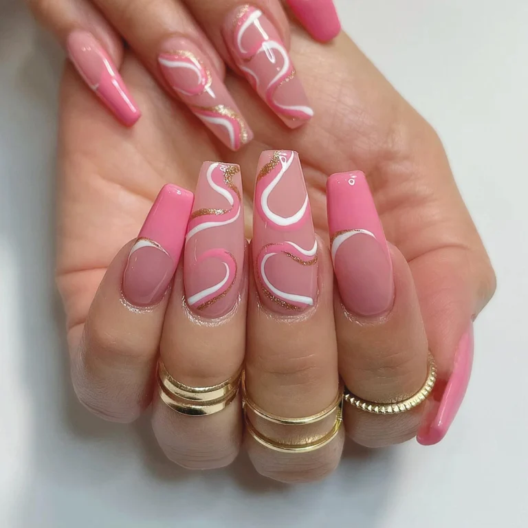 Now this is where ombre meets art. The pink base fades beautifully, while the swirls add movement and personality. It’s bold, but thoughtfully done.
