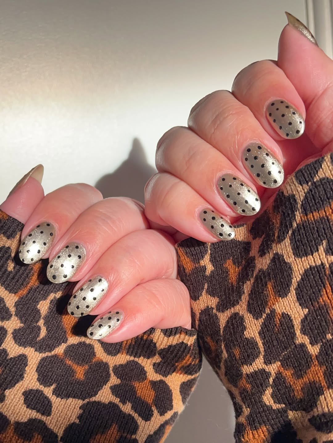 Bronzy shimmer meets tortoiseshell-inspired dots, and suddenly your nails look like jewelry. This one feels luxe without trying too hard.