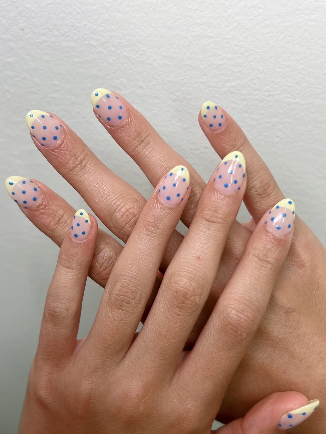 Soft yellow tips with playful blue dots? Instant mood booster. This set feels lighthearted, fresh, and perfect for spring-to-summer transitions.