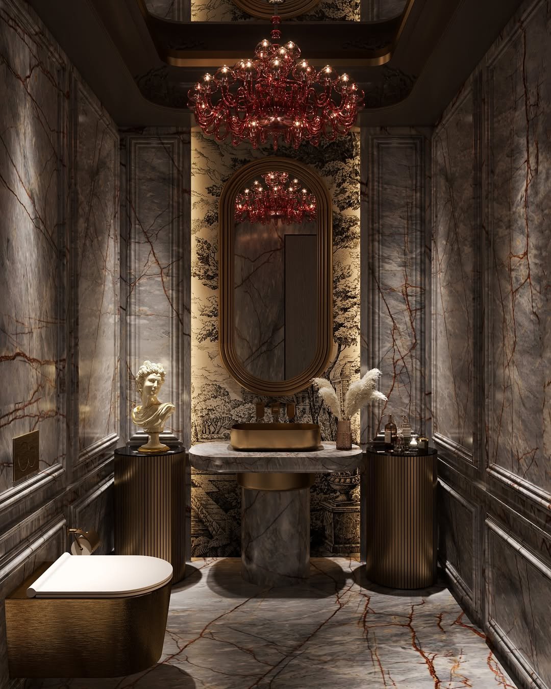 It’s high-impact, no doubt. The kind of powder room your guests will absolutely remember—and probably talk about later.
