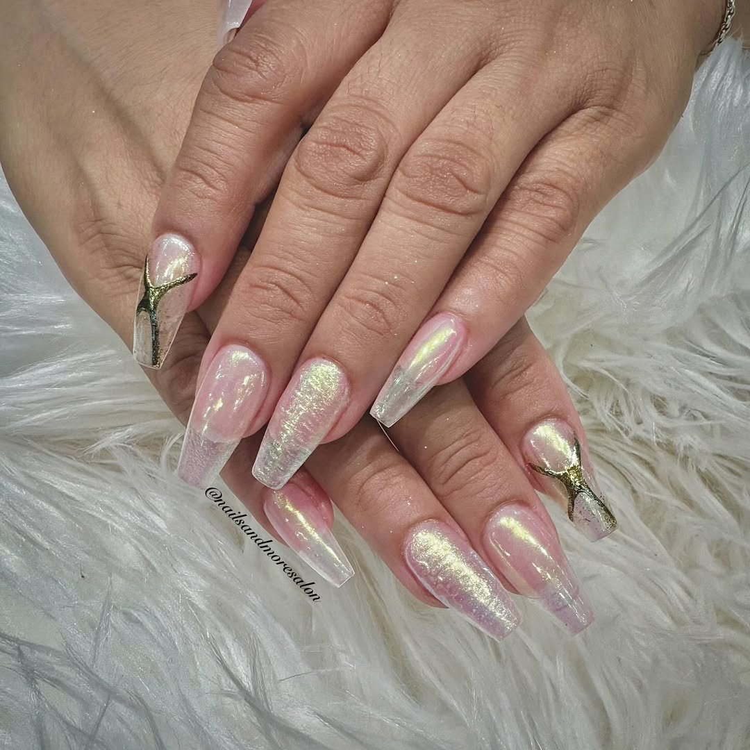Milky pinks, pearl accents, and a glassy finish create a look that feels timeless and elegant. Nothing loud, nothing rushed.