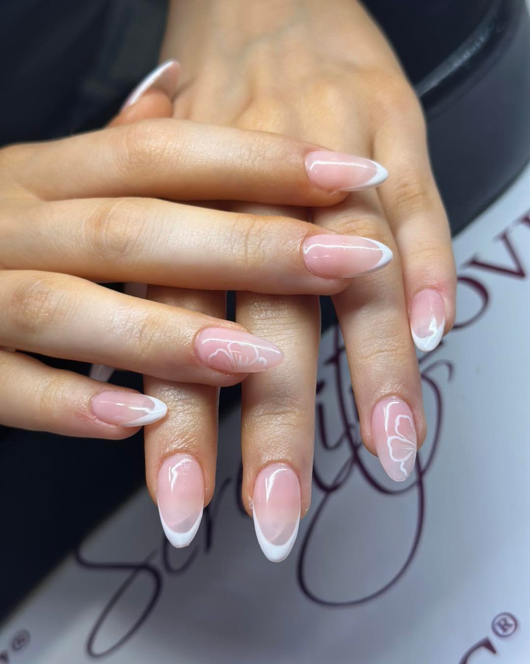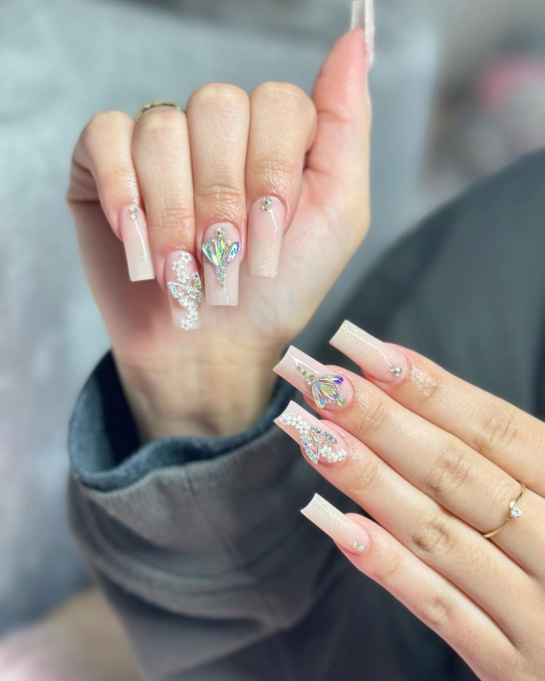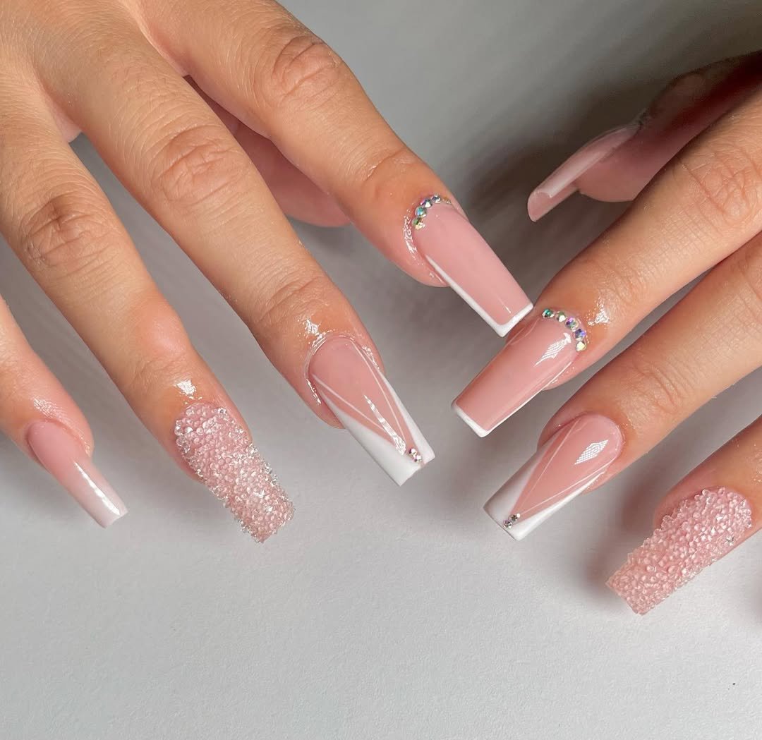 A modern French with elevated details always hits. The blush base keeps things classic, while subtle crystal accents make it feel fresh and intentional.