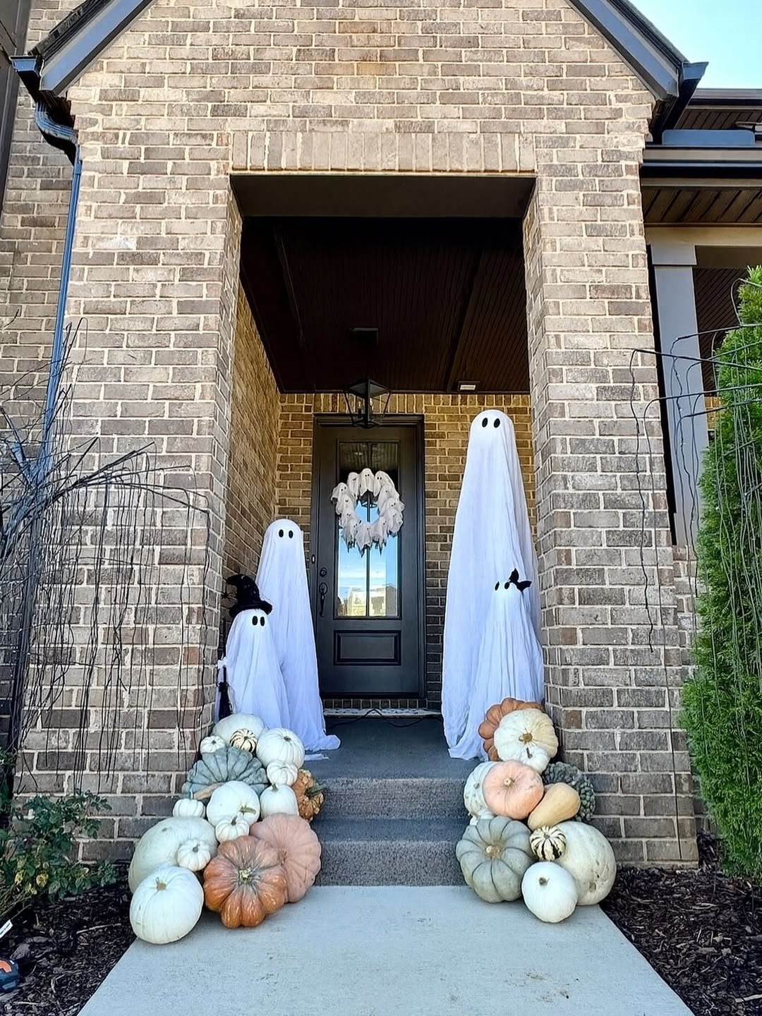 A little playful, a little spooky, and still somehow chic. The draped ghost figures paired with muted pumpkins bring a Halloween touch that feels fun without crossing into over-the-top.