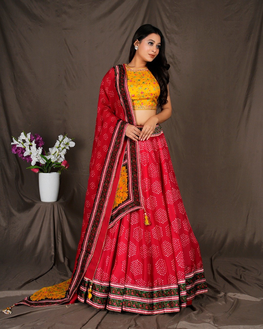 Here, red meets warmth and joy. The pop of golden yellow against the red base gives this outfit a festive, youthful charm that feels light and celebratory. It’s traditional, but with a fun, modern rhythm.
