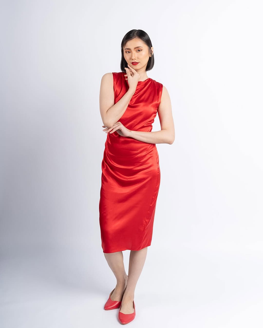 Clean lines and rich color take center stage here. This look strips things back and lets the red do all the talking—sleek, modern, and quietly powerful.