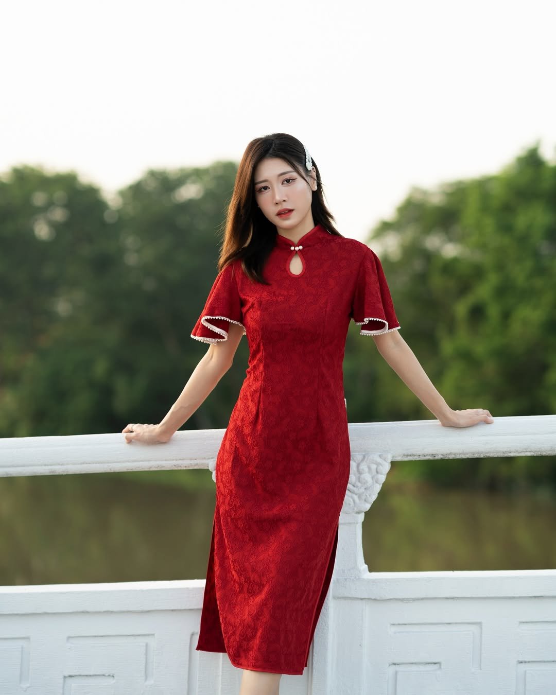 Clean lines, refined structure, and that classic red—it’s a modern cheongsam done right. The silhouette feels polished and elegant without feeling stiff.