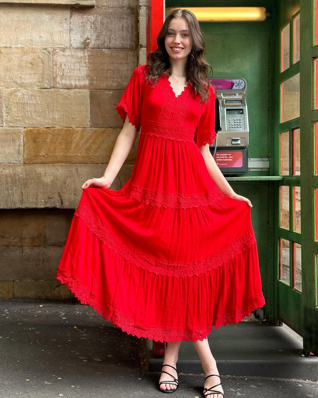 This dress proves lace doesn’t have to feel traditional or heavy. The clean silhouette, paired with rich red lace, makes it feel contemporary and wearable while still very occasion-worthy.