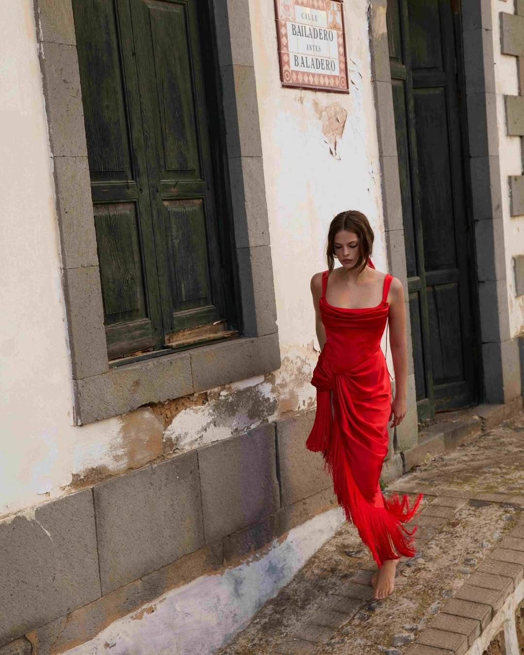 Ending strong with a cinematic feel. This red midi looks like it belongs in a European street scene—fluid, dramatic, and beautifully undone.