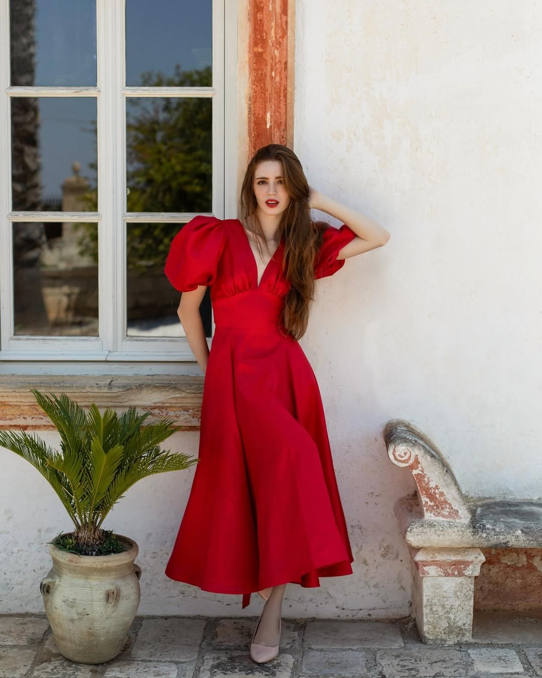 Red midi dresses have a way of commanding attention without saying a word. In 2026, they’re showing up with fluid silhouettes, refined details, and rich shades that turn even a simple walk into a full moment.