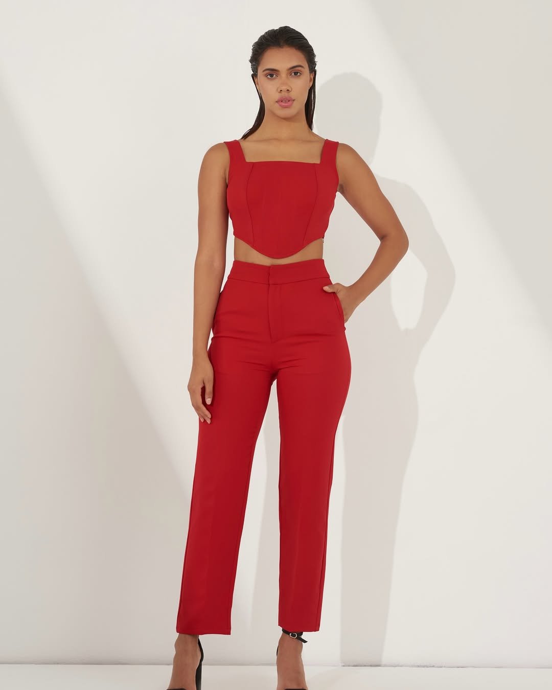 Sharp, sleek, and refreshingly bold. This matching red set feels like confidence in outfit form—tailored enough to feel strong, yet minimal enough to stay chic.