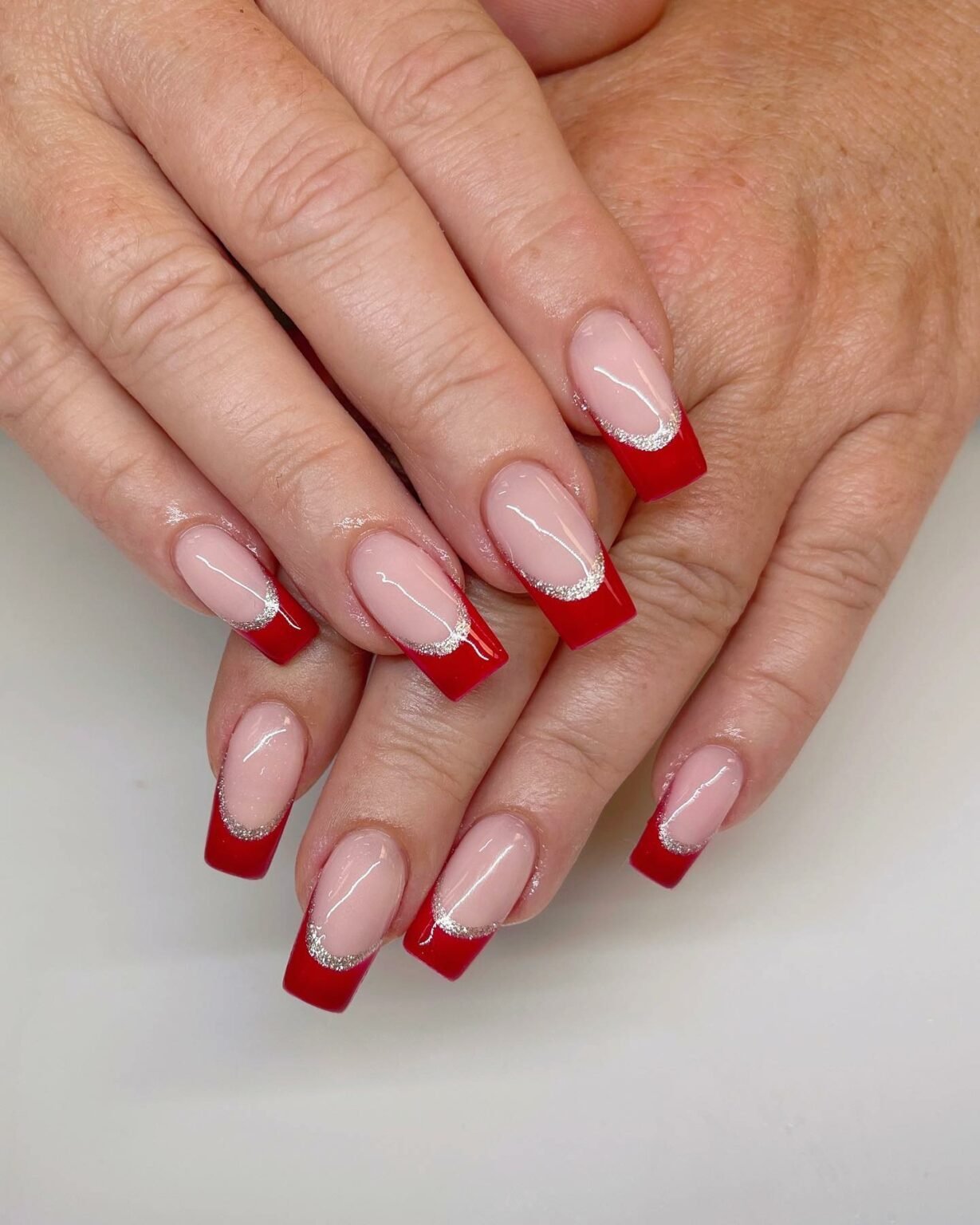 Red French tips already feel iconic, but the silver shimmer lining each one adds a touch of glamour that makes the whole look feel extra special. It’s clean, crisp, and so flattering on the hands — the kind of mani that works from workday meetings straight into date night.