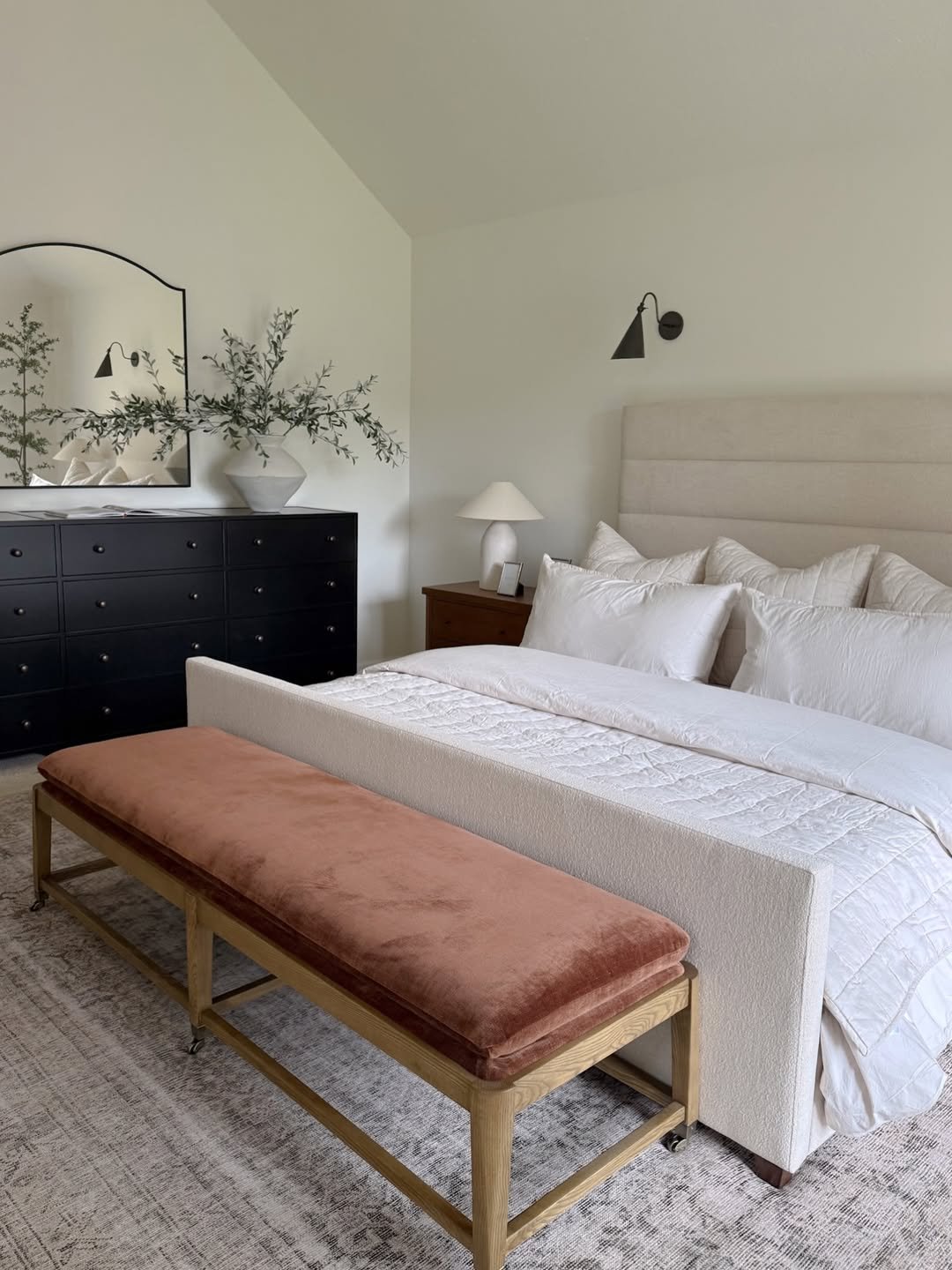 The layered pillows and subtle patterns add just enough personality. It’s a space that feels current but still comfortable, striking that balance between style and function.