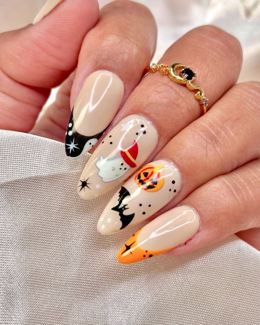 These are the nails of someone who plans their costume in August and brings full-size candy bars to trick-or-treaters. Respect.