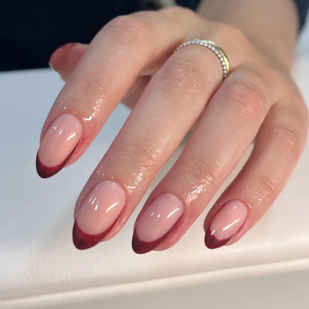 @corrinnabianca keeps things sleek and refined with this deep burgundy French tip moment. The almond shape gives that perfect elongation, while the glossy wine hue adds an air of confidence and mystery.