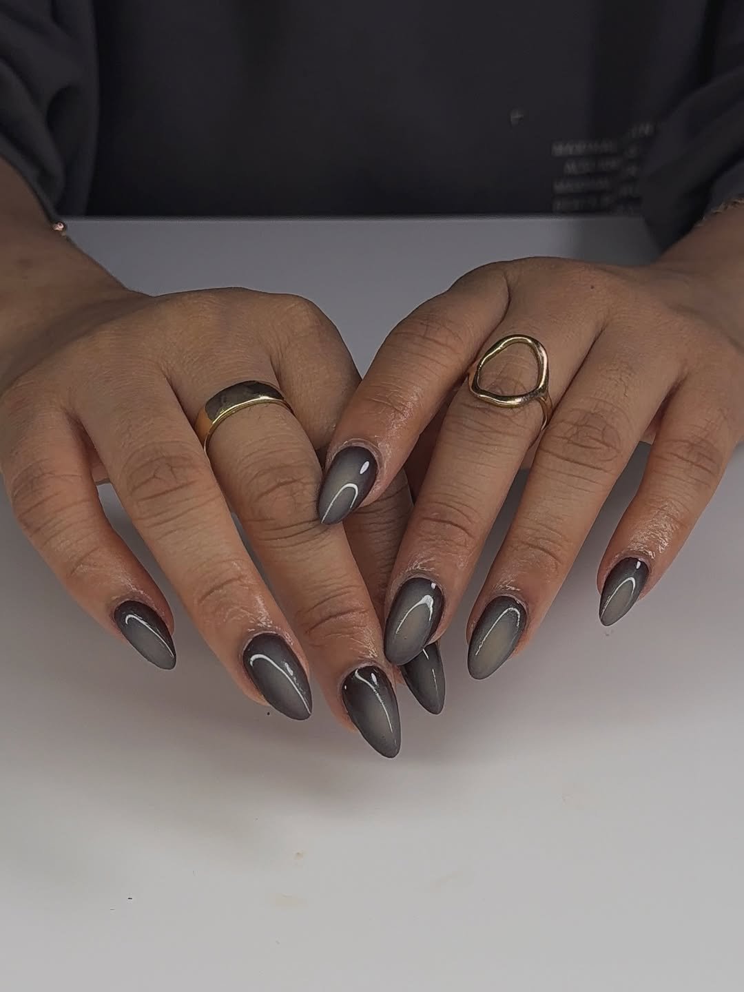 The gradient from charcoal to silver adds that extra layer of sophistication. It’s not flashy, but it definitely demands attention — the kind of manicure that makes you feel powerful just by wearing it.