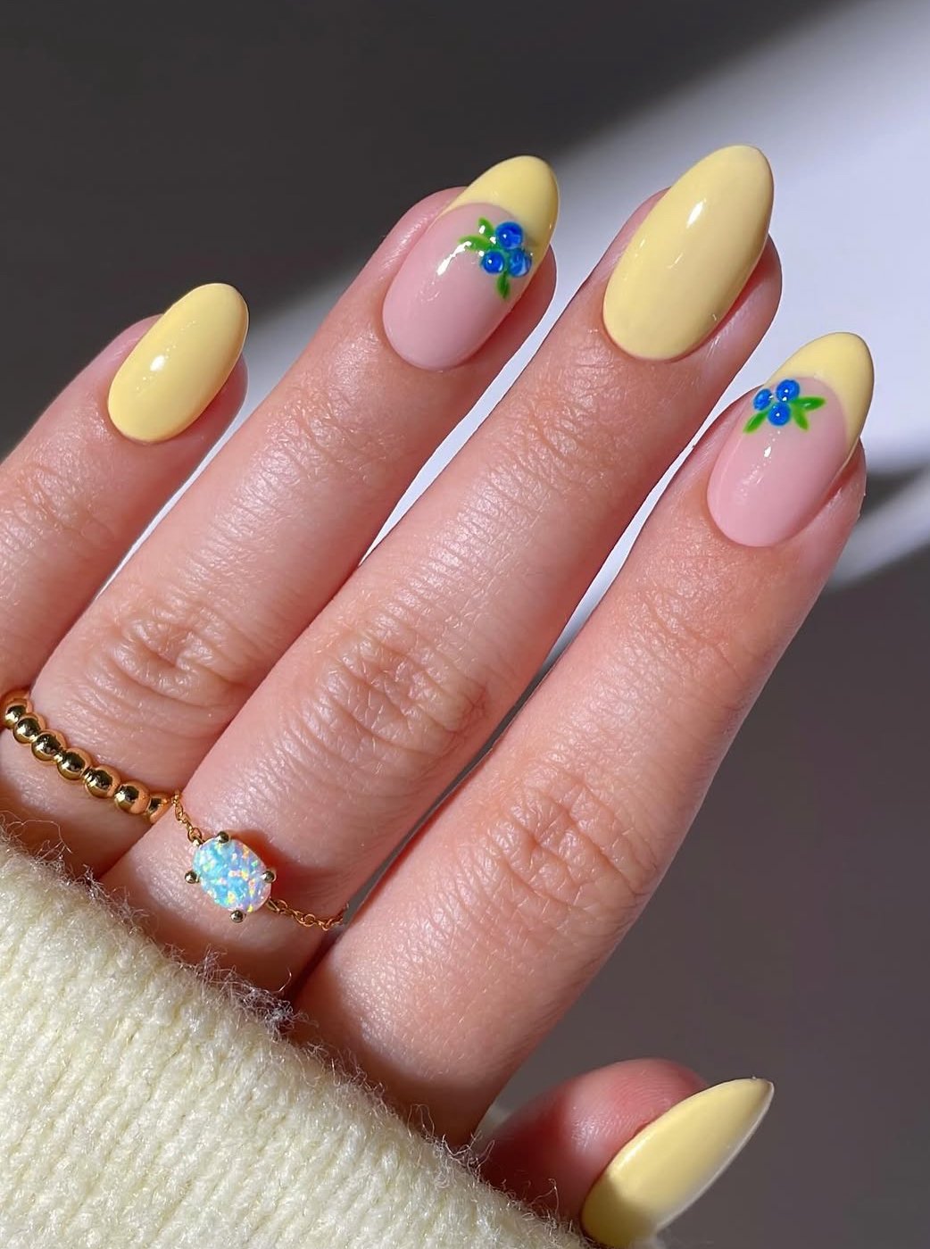 This sunny little set feels like a tiny dose of happiness for your hands. The soft yellow polish is bright without being overwhelming, and that single daisy accent adds the sweetest little detail.