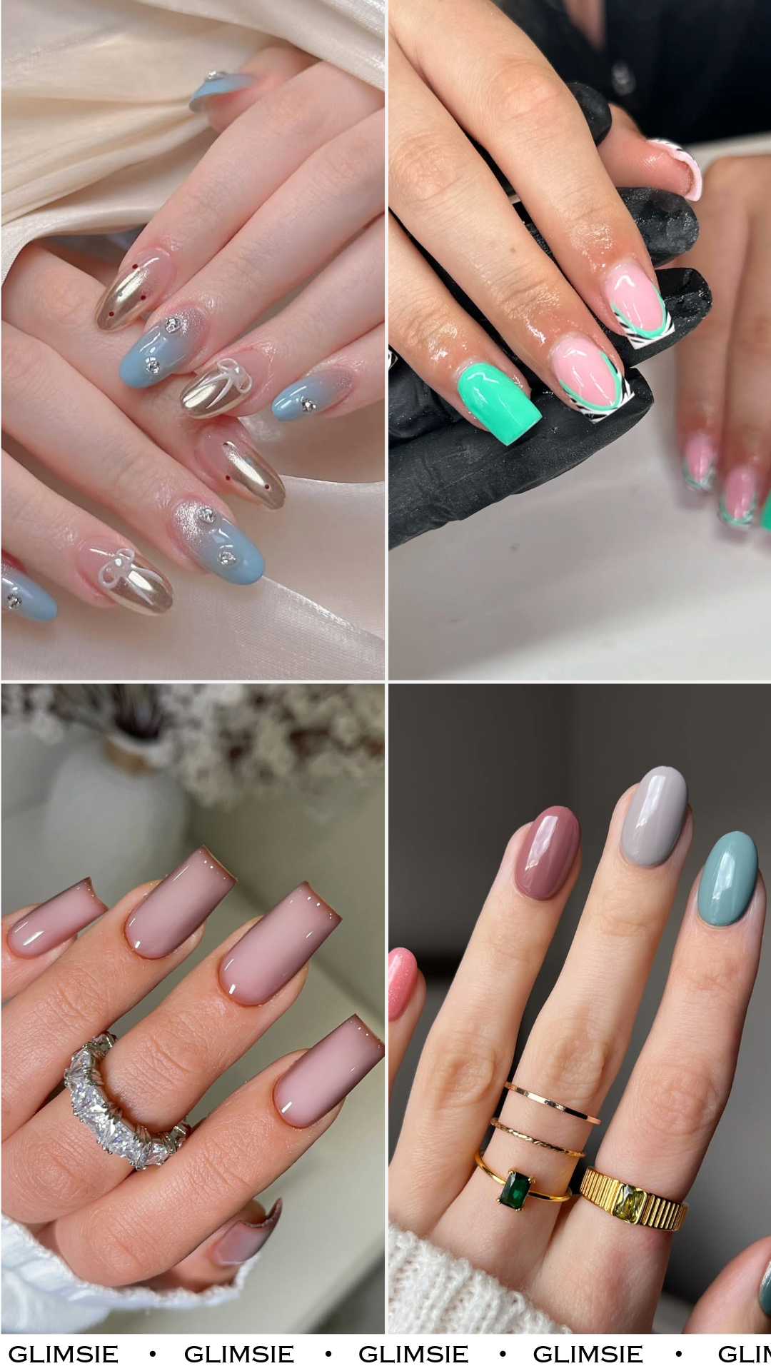 There’s no art, no glitter, no extras. Just glossy, coordinated tones that somehow look effortlessly cool. A little variety, zero stress.