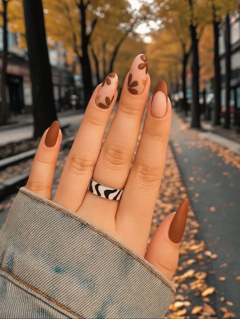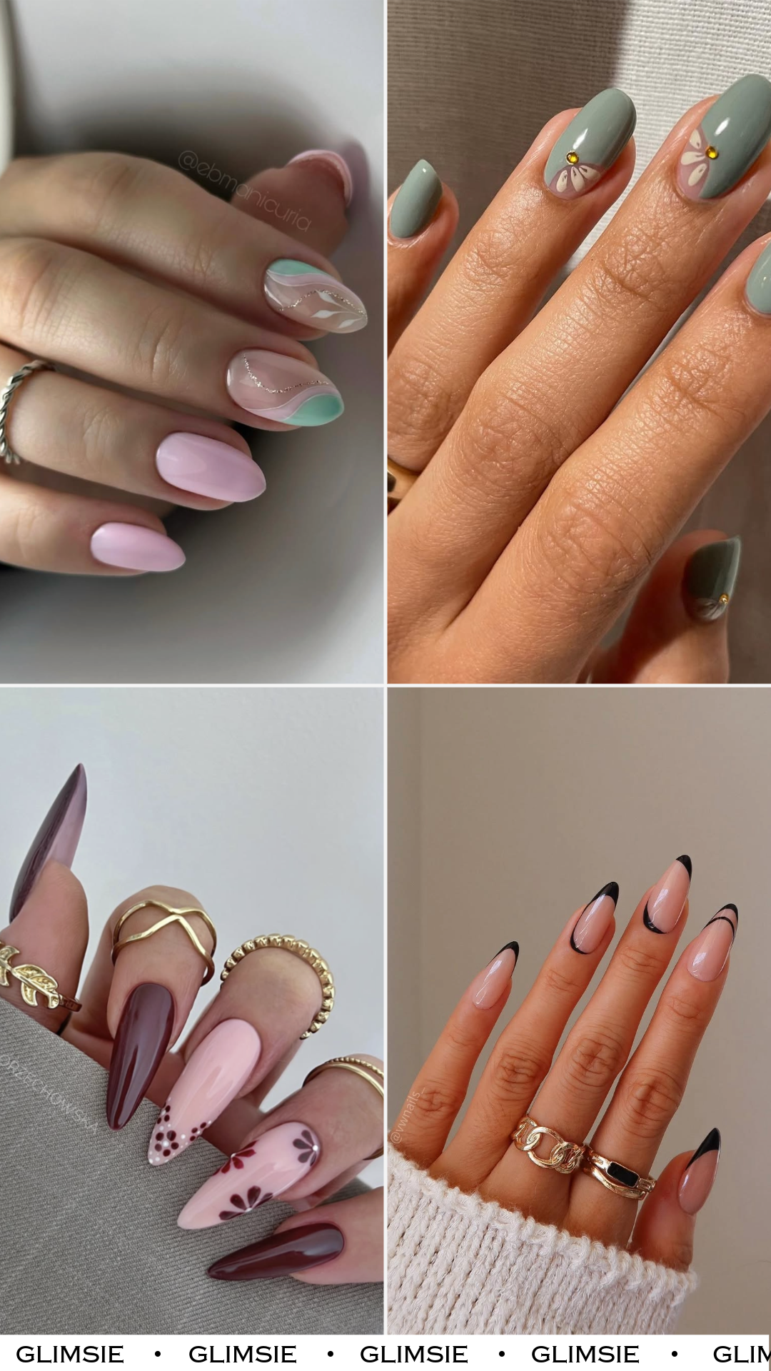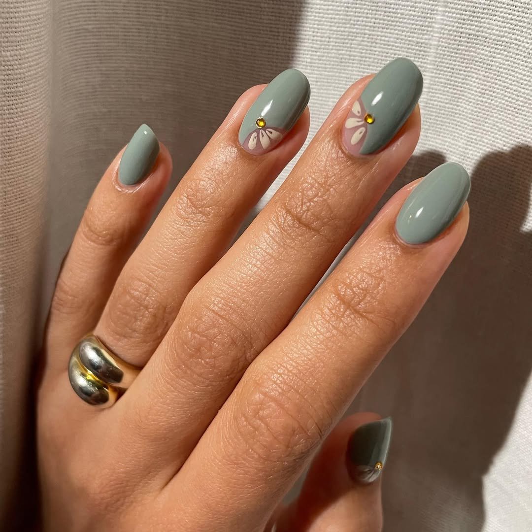 Sage green already has that calm, earthy charm, but the tiny petal details push this set into “quietly stunning” territory. It’s effortlessly soft, like a cozy sweater in nail form.