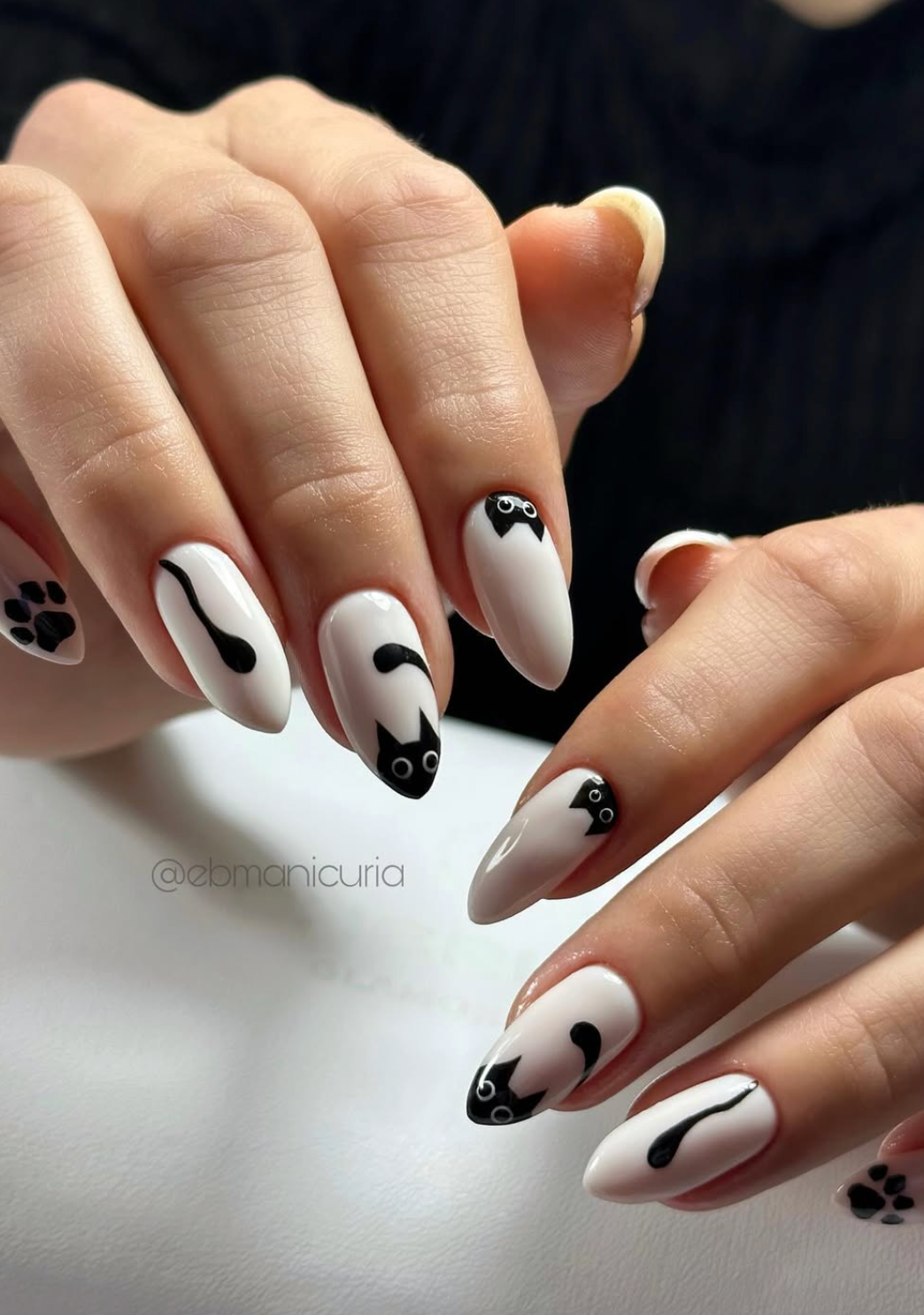 Black-and-white, clean lines, and tiny cat silhouettes—adorable without being childish. It’s creative simplicity at its best, giving you a pop of personality while keeping things neat.