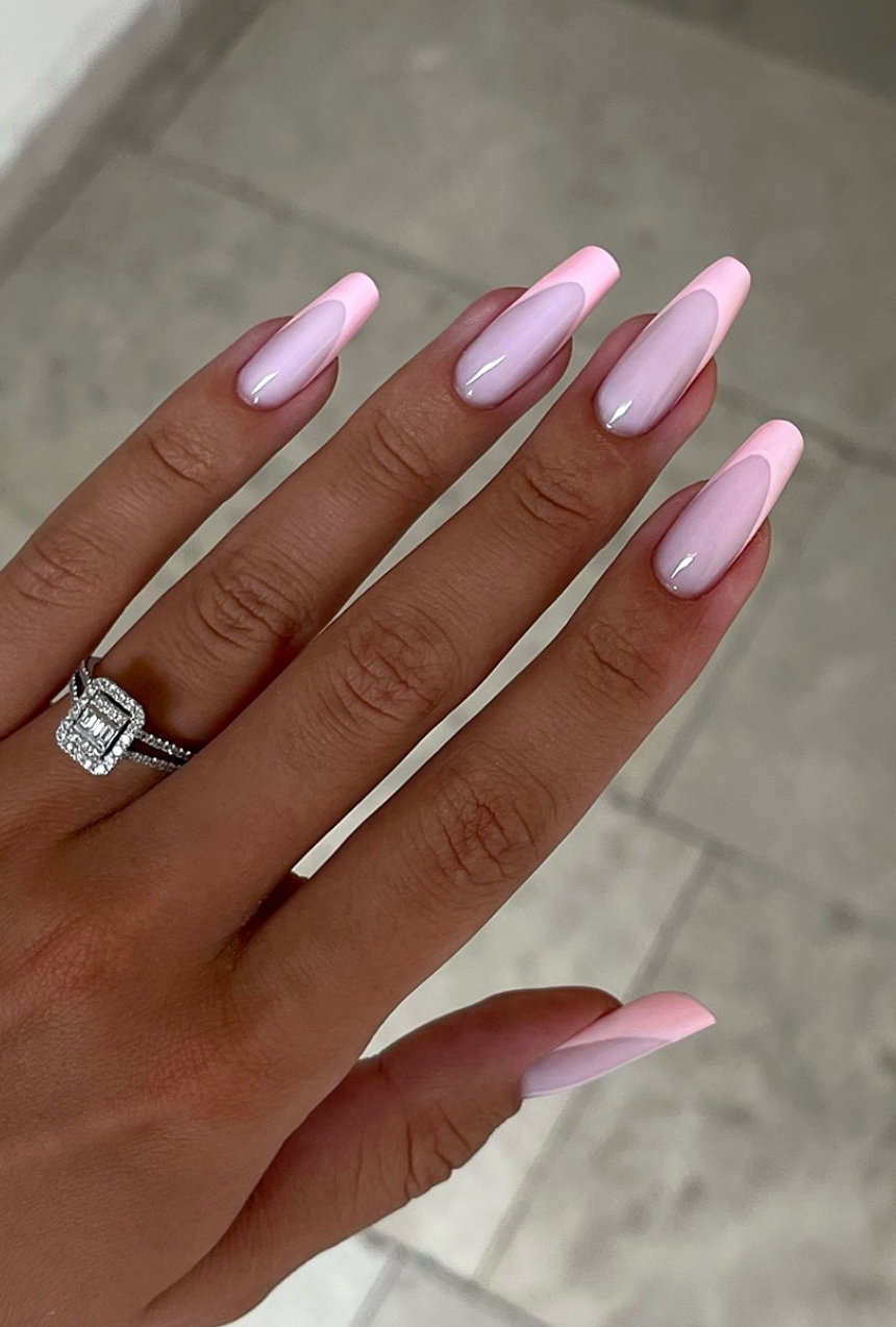 This square French is giving classic bride, even if you’re just going to brunch. The fade is subtle, gentle, and super soft, making it the kind of mani you choose when you want quiet luxury without trying too hard.