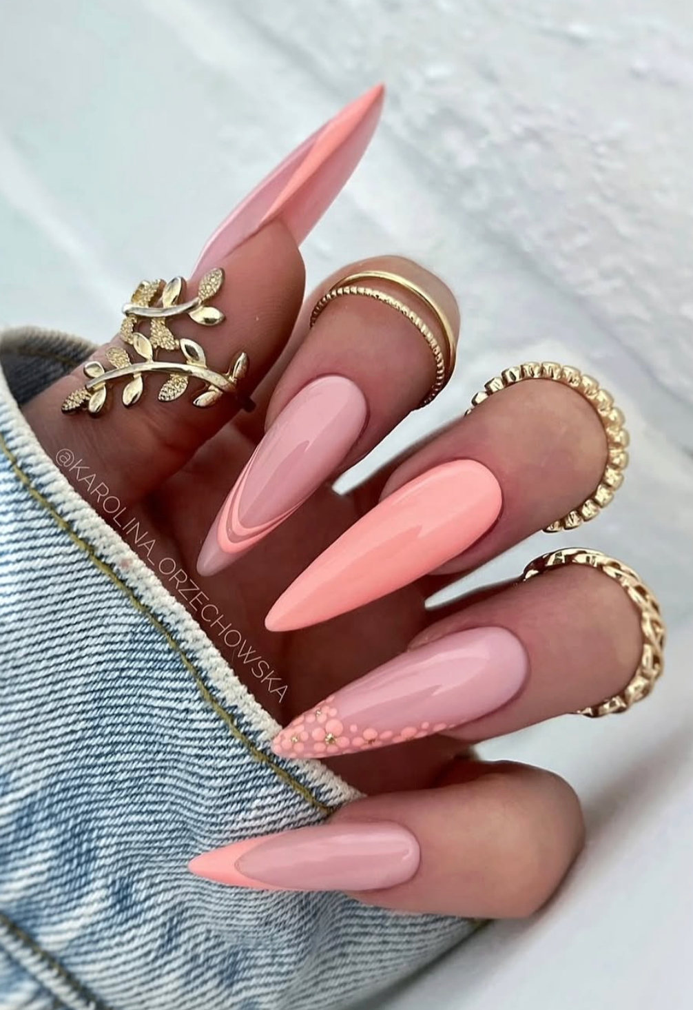 These long, sculpted pinks are like the beauty equivalent of a silk dress—smooth, classy, and definitely a statement. The soft gradient and tiny textured accents add a designer touch.