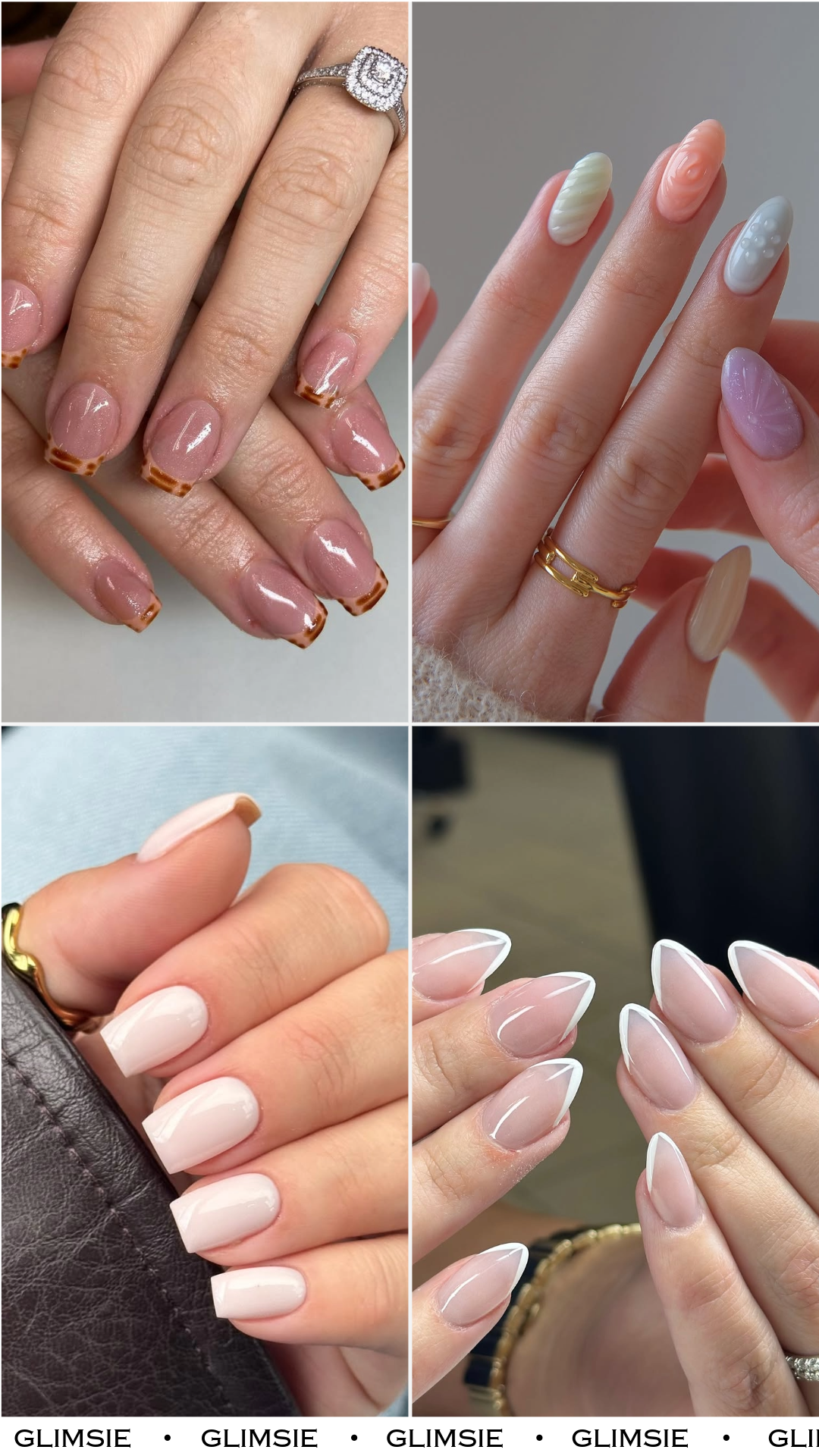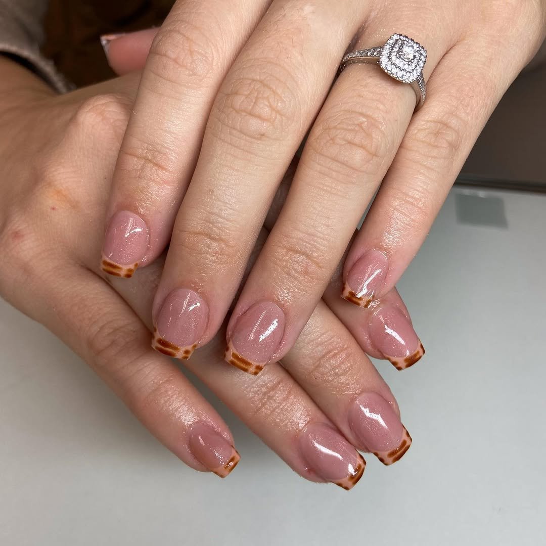 If you love simple nails but still want something a little different, these tortoiseshell tips are such a clever twist. The soft nude base keeps everything clean and natural, while the warm brown tips add just enough pattern to make the manicure feel elevated. It’s subtle, but definitely not boring.