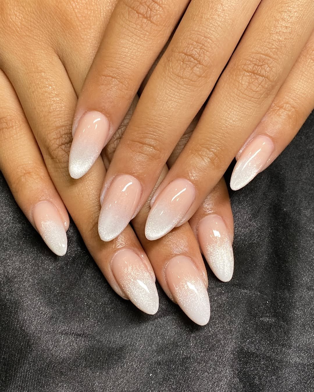 This look is proof that simple nails can still feel luxurious. The soft pink base fades gently into a pearly white tip, creating a dreamy ombré effect that looks almost like natural light reflecting off the nails.