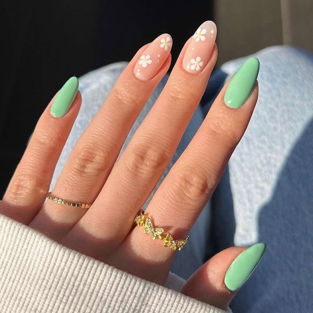 I love how this set mixes bold solids with soft, botanical art. It’s a reminder that spring nails don’t always have to be pastel to feel seasonal—they just need a touch of nature.