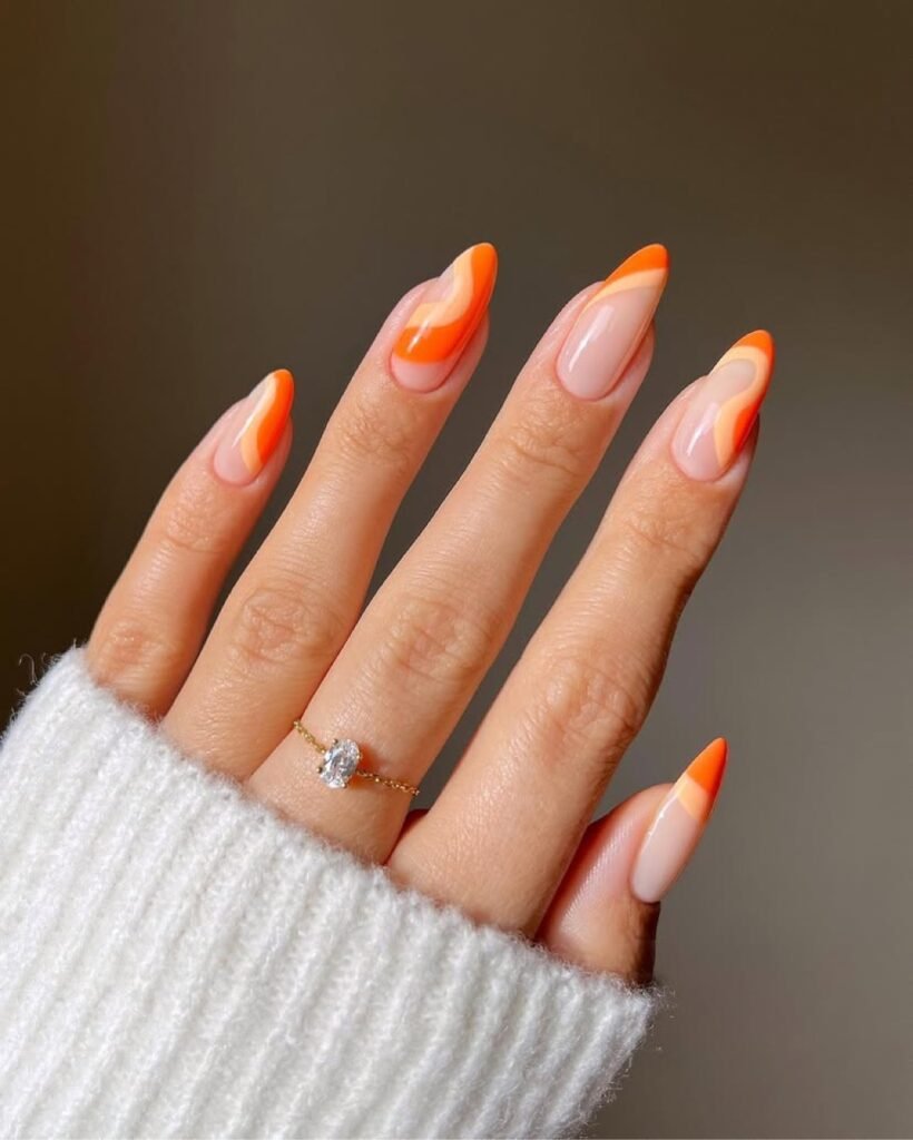 That pop of orange is pure spring energy. Clean nude bases keep things grounded, while the bright tips add a juicy, fresh twist that feels modern and confident.