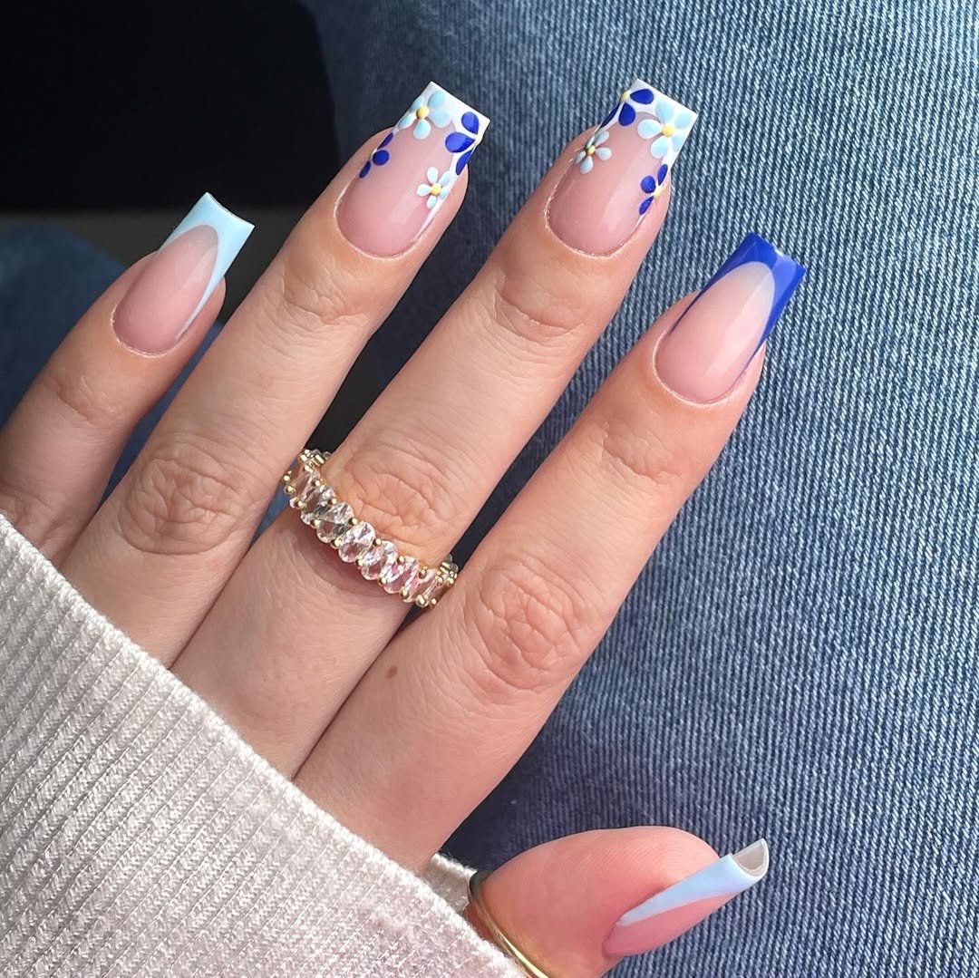 These blue French tips feel airy and light, almost like clouds on a clear spring morning. The tiny details elevate the look without taking away from its simplicity.
