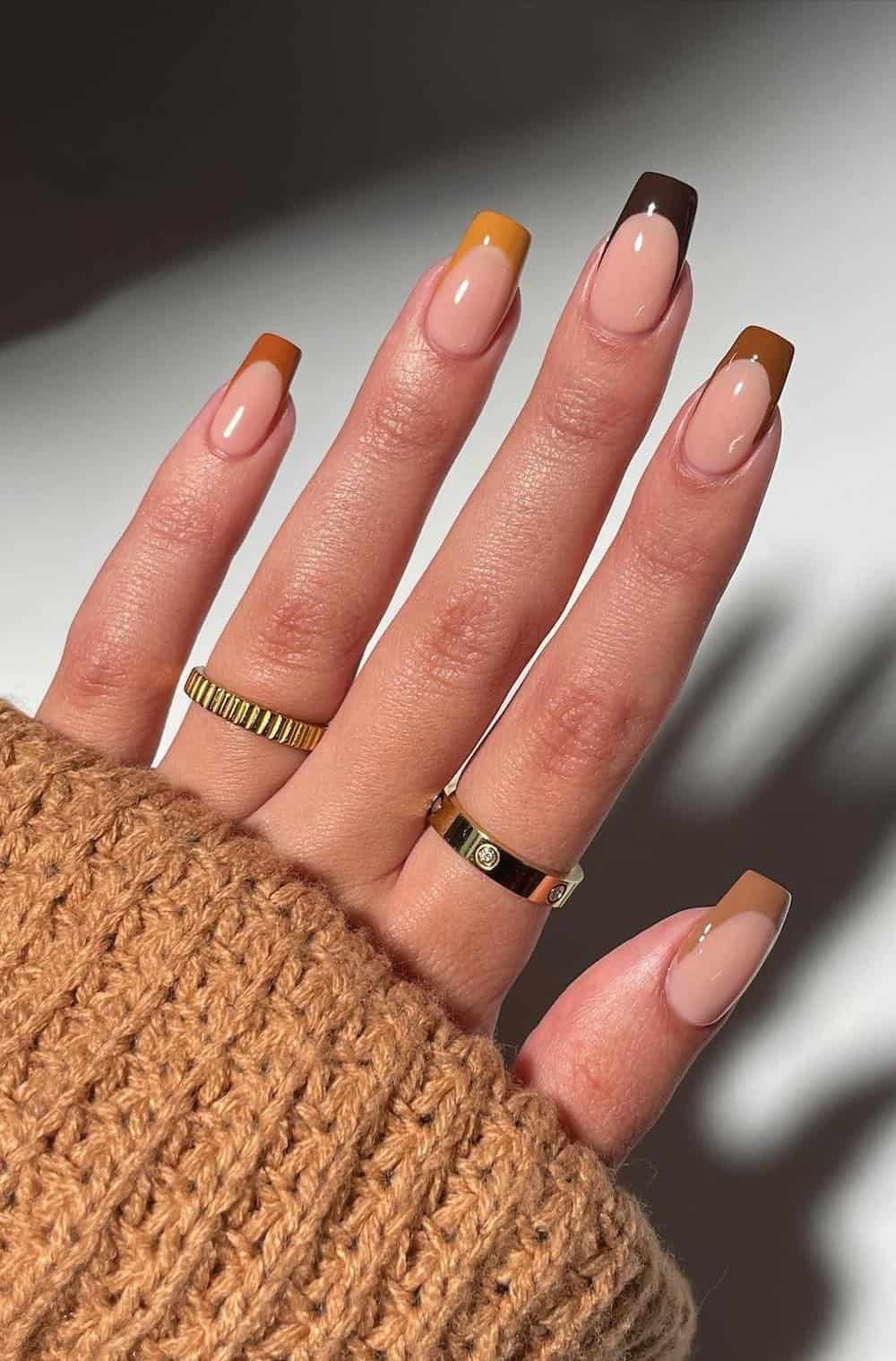 This playful take on the French tip is full of personality. Each nail features a different fall hue—chestnut, caramel, pistachio, even a pop of sky blue—making it both modern and delightfully fun.