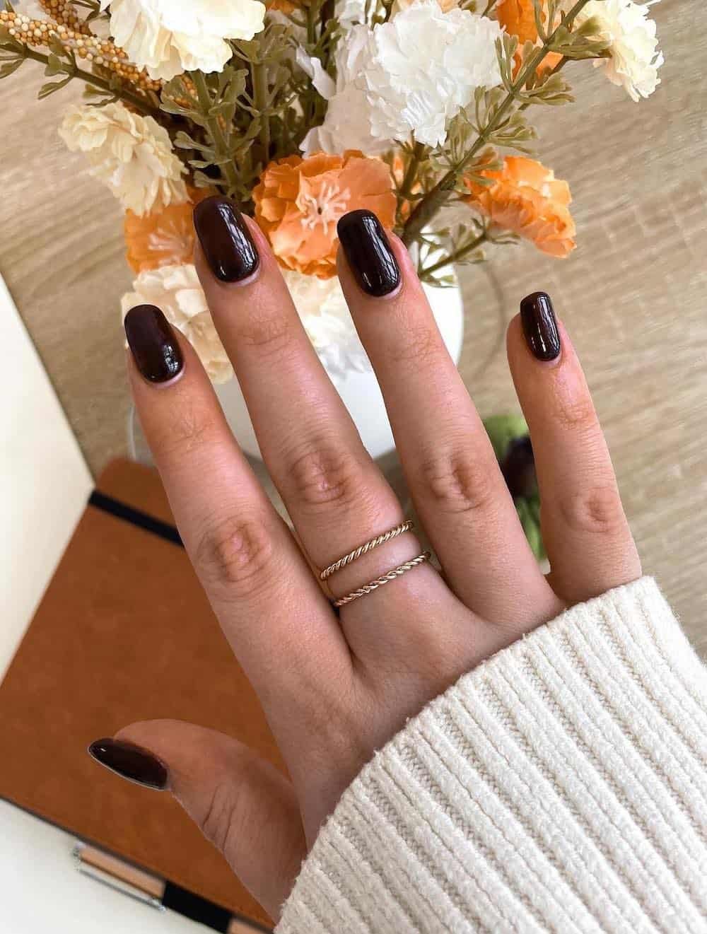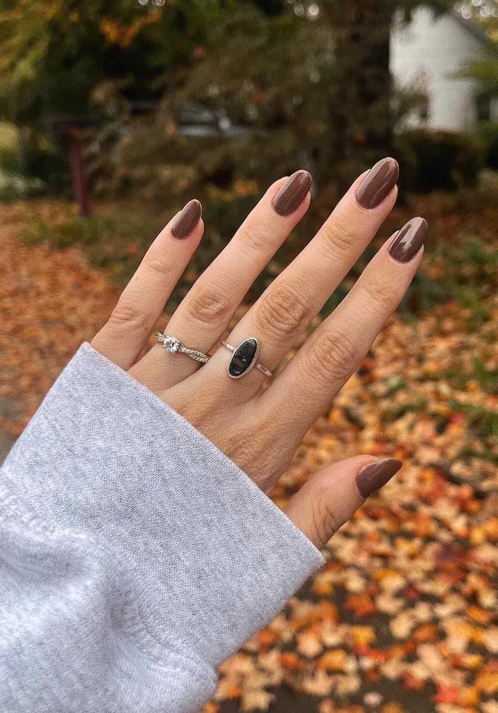 Sometimes all you need is a rich brown to make a statement. This glossy cocoa shade embodies the essence of fall — comforting, deep, and effortlessly sophisticated. It’s the kind of color that looks amazing with every skin tone and outfit.