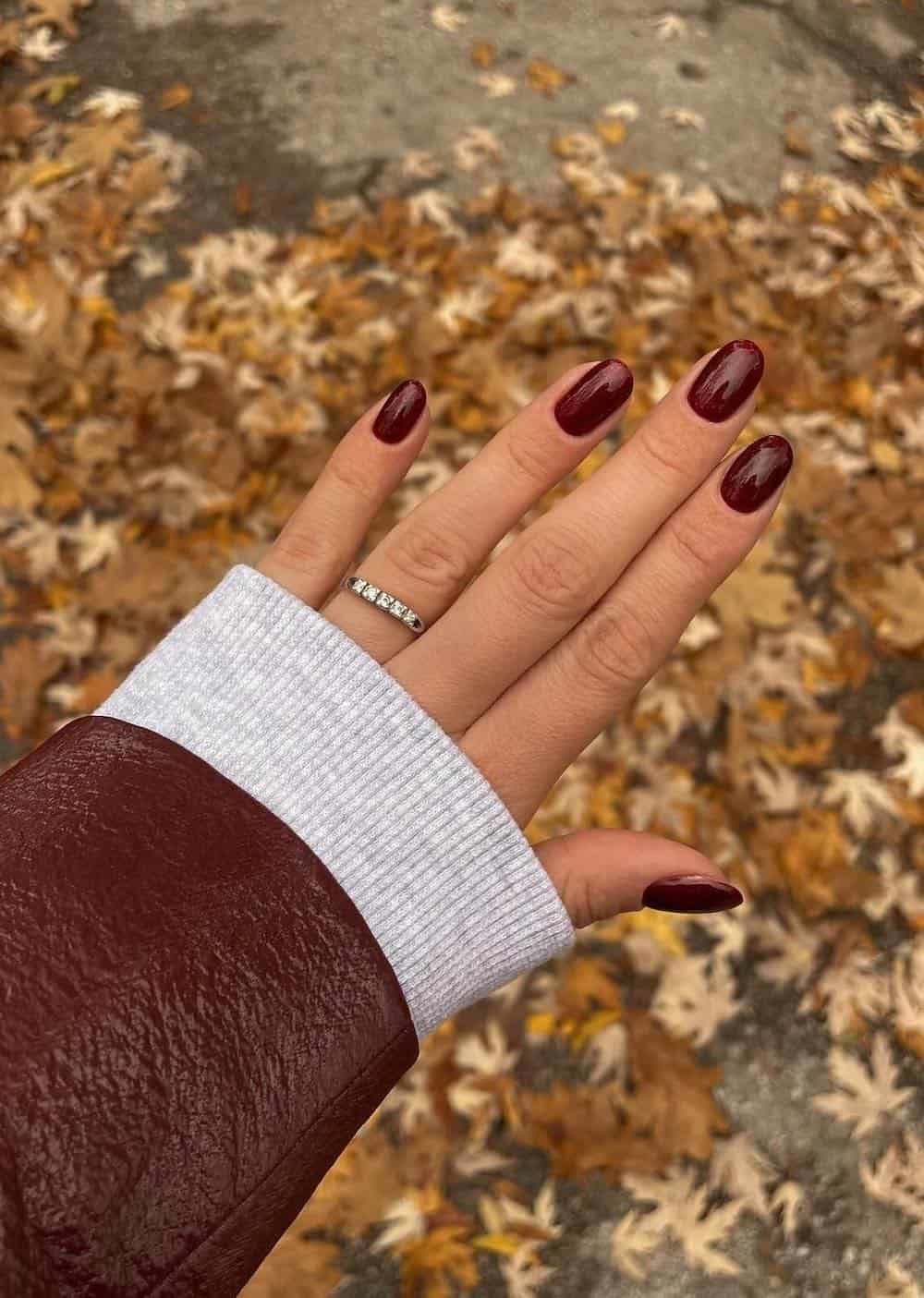 Deep, glossy burgundy nails will never go out of style, and this shade captures fall’s richness perfectly. It’s dramatic yet classic, like your favorite red wine poured into a crystal glass.