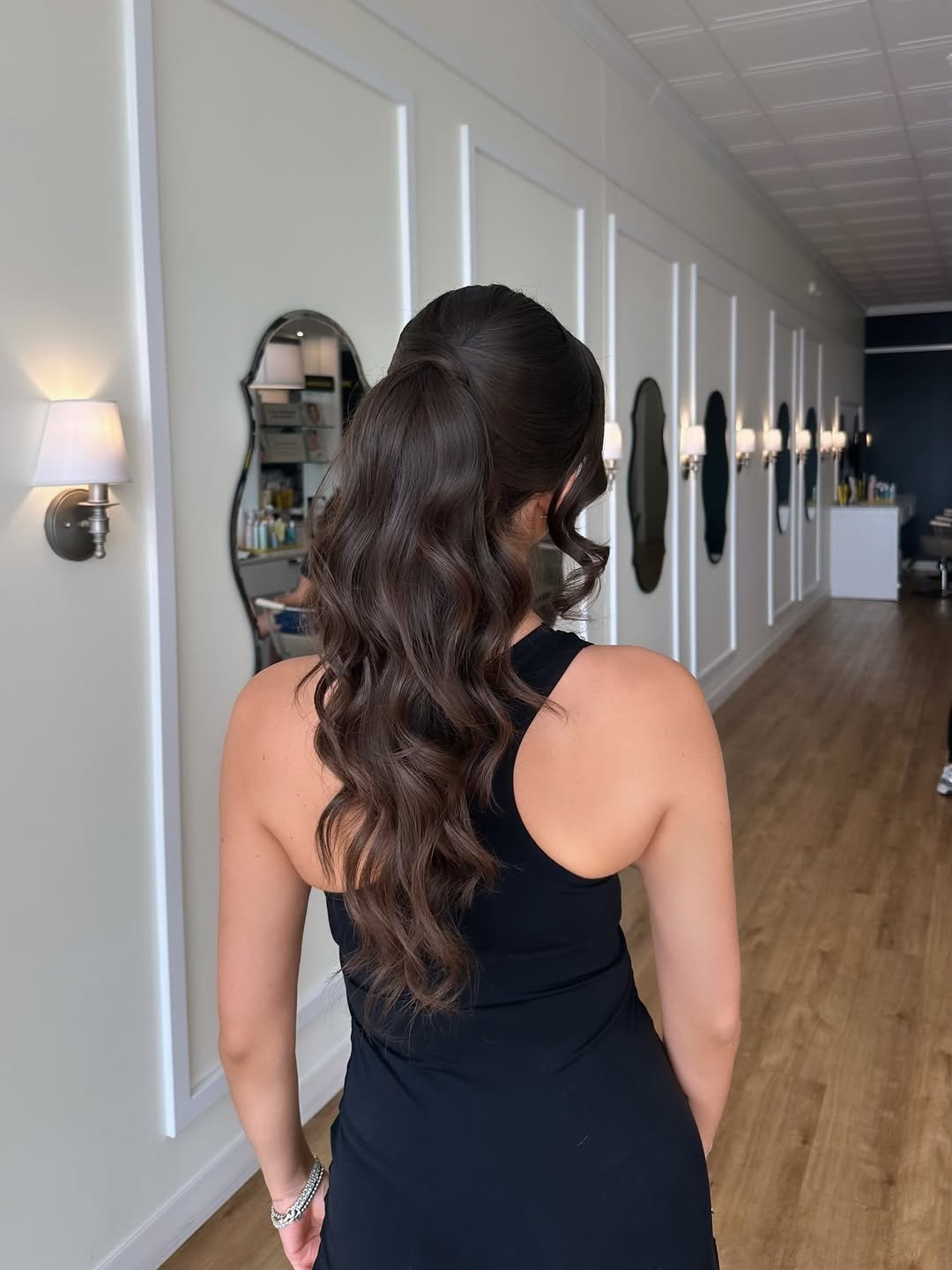 Soft, bouncy curls with a polished pull-back—@drybarshops_wheaton delivers a ponytail that’s equal parts elegant and flirty. It’s set mid-height with just enough volume to feel red carpet-ready without being over-the-top.