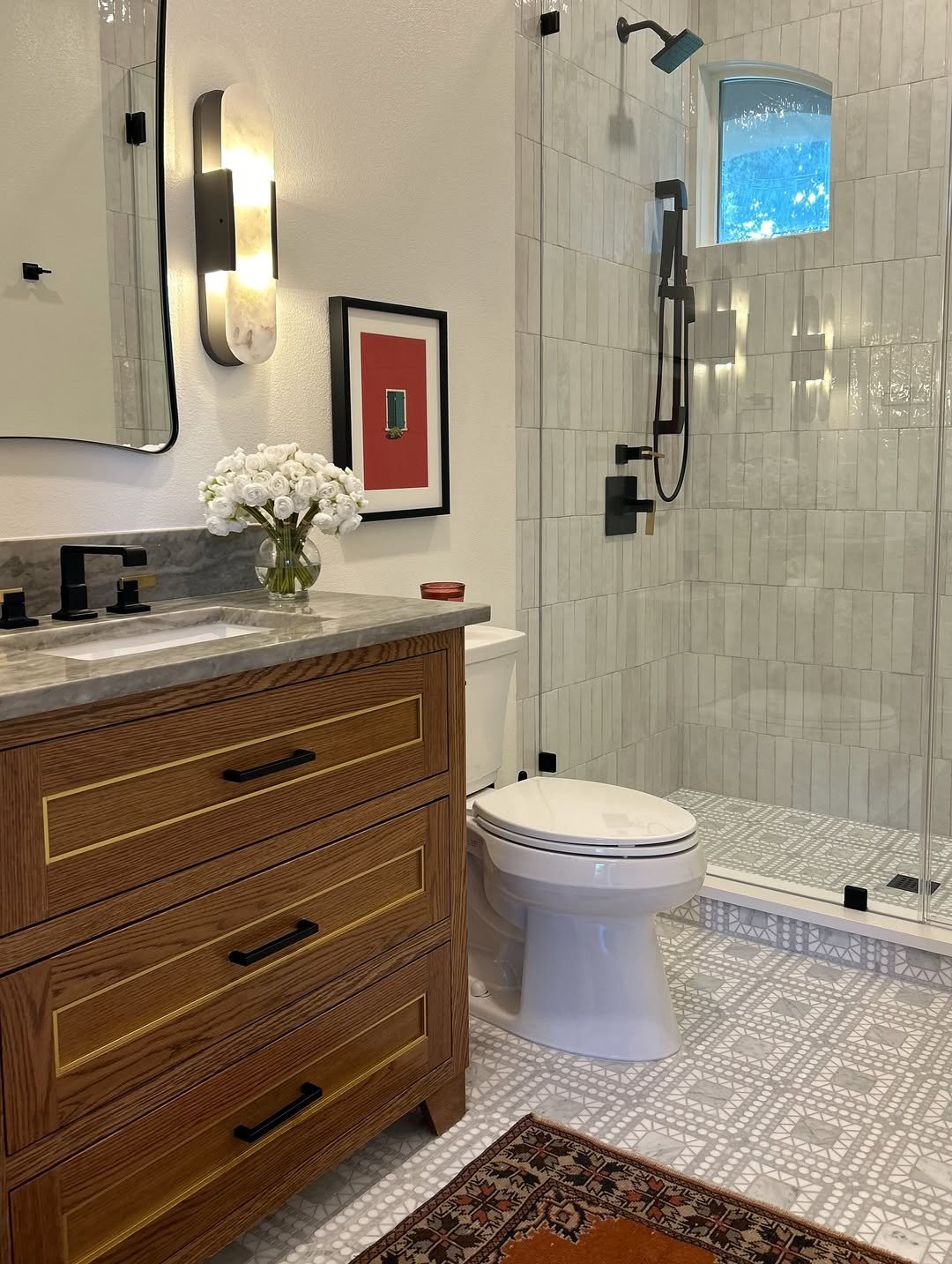 And that glass shower? It opens everything up visually, making the room feel way bigger than it actually is. Smart, stylish, and super intentional.