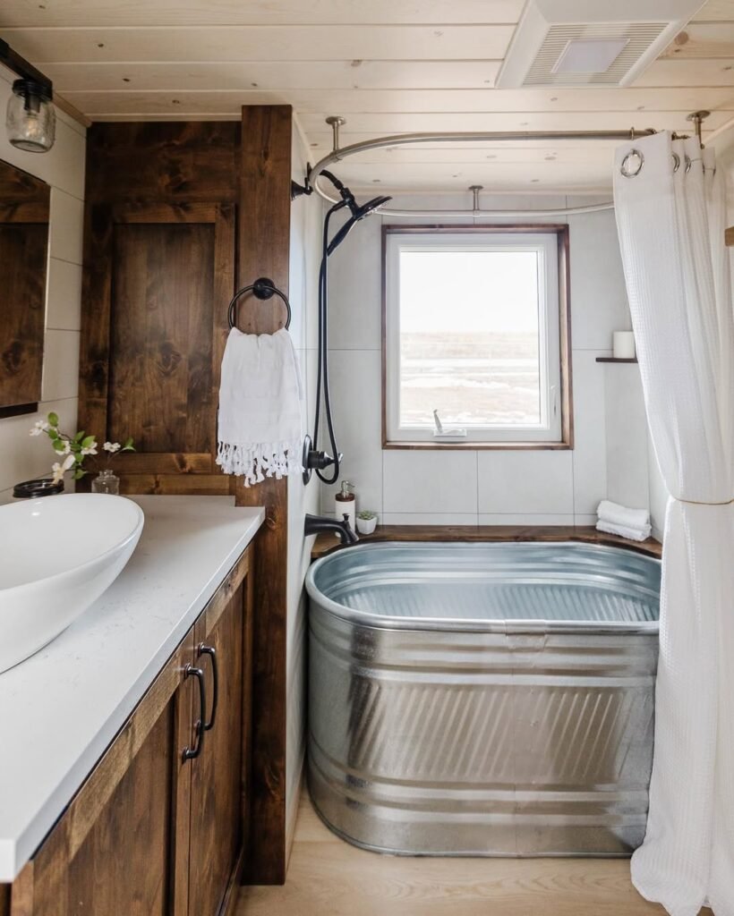 You’d never guess how compact this is. The galvanized tub-shower combo is such a creative solution—it saves space and adds personality at the same time.
