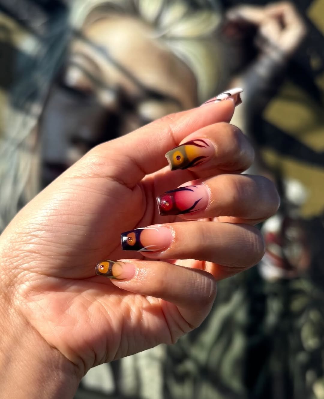 What makes this set stand out is the texture and dimension. It’s creative, a little edgy, and totally different from your typical French tip.