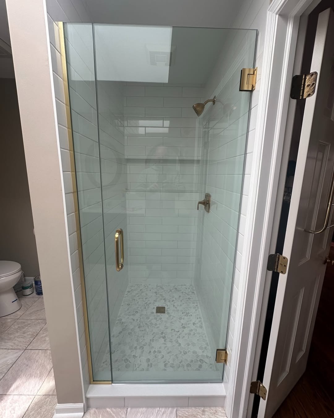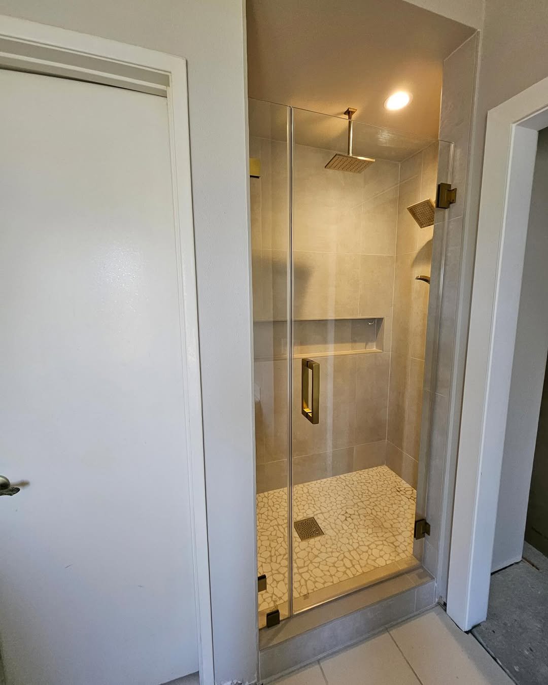 Corner showers can go either way—but this one nails it. The angled glass keeps the footprint small without sacrificing comfort inside.