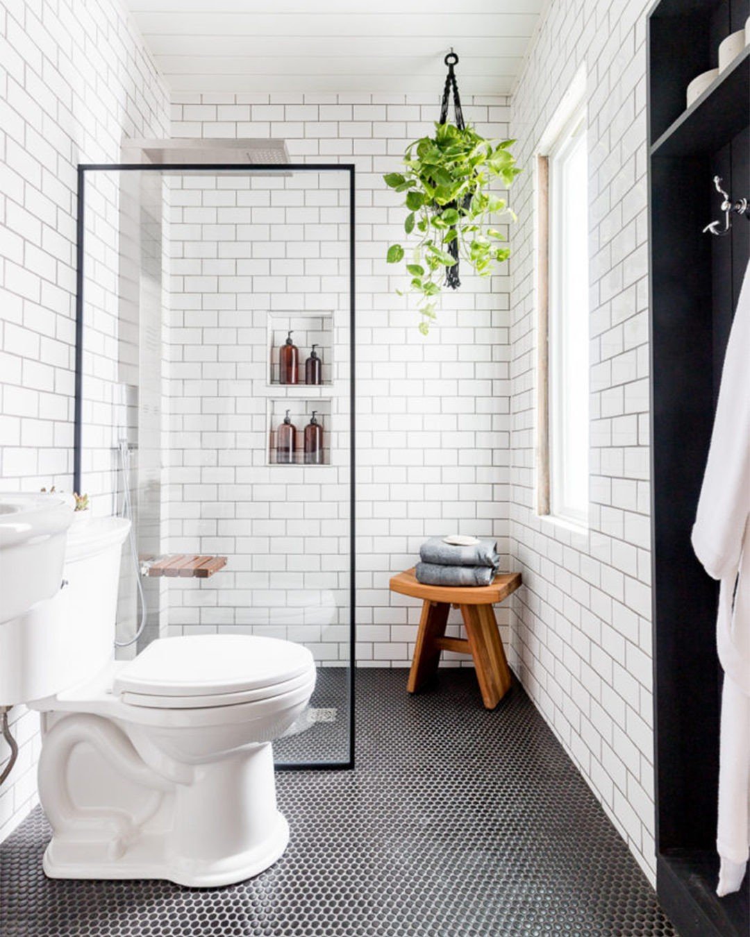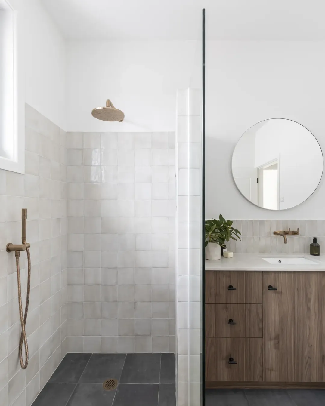 Add in the plants and that natural light, and suddenly the whole space feels alive. Small shower, big character.