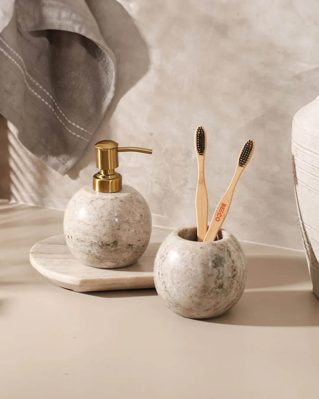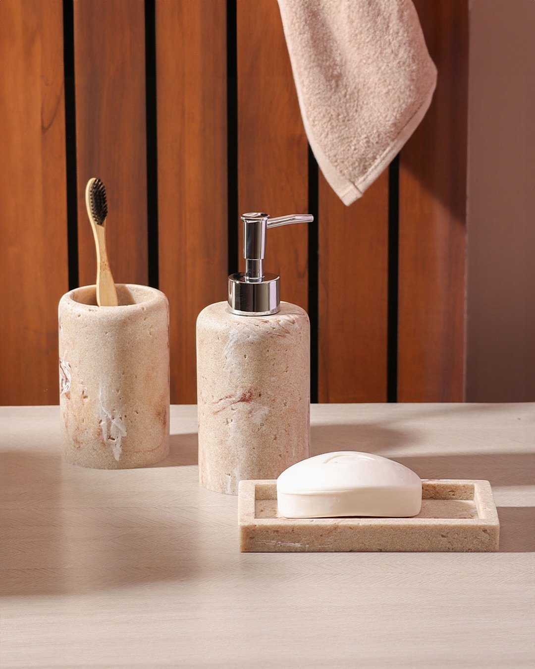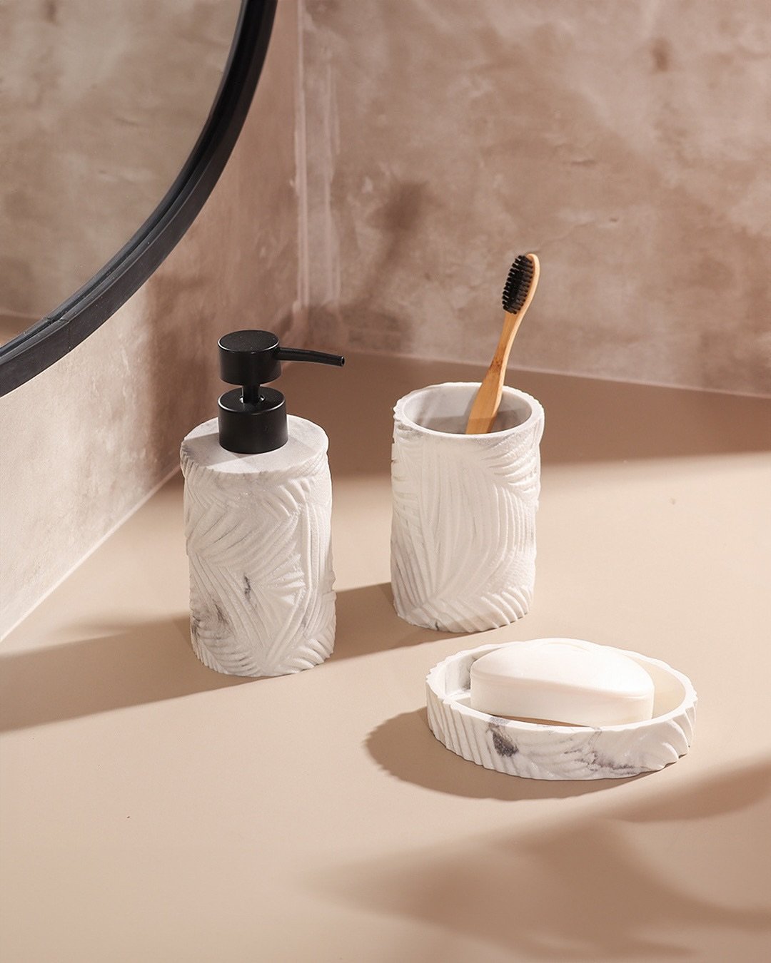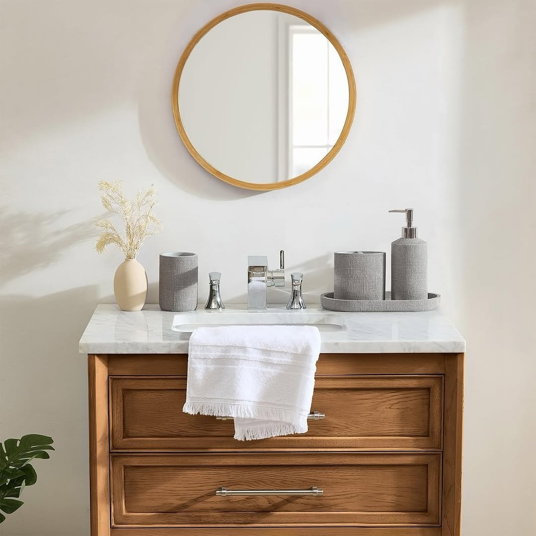 And the toothbrush holder detail? Subtle but smart. It keeps things practical without disrupting the aesthetic. This is the kind of set that doesn’t shout for attention, but you definitely notice it—and maybe even run your fingers over it just because it looks that satisfying.