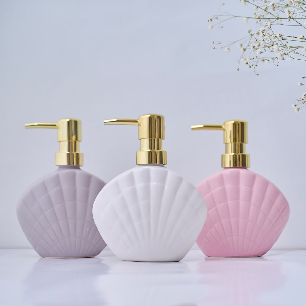 Okay, this is pure fun. The shell-shaped dispensers in soft pastel tones feel playful, a little nostalgic, and honestly just cute in the best way. It’s giving subtle mermaid-core, but grown-up enough to still feel stylish.