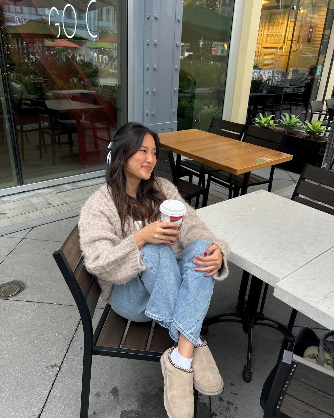 What makes it work is the balance. The textures, the pastel palette, the little accessories on the table—it all creates a vibe that feels styled without trying too hard. Like someone who accidentally looks Pinterest-perfect on a coffee run.